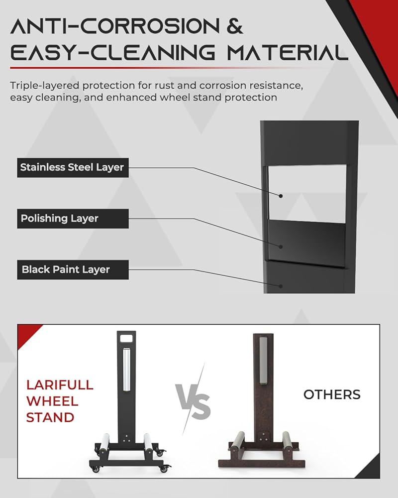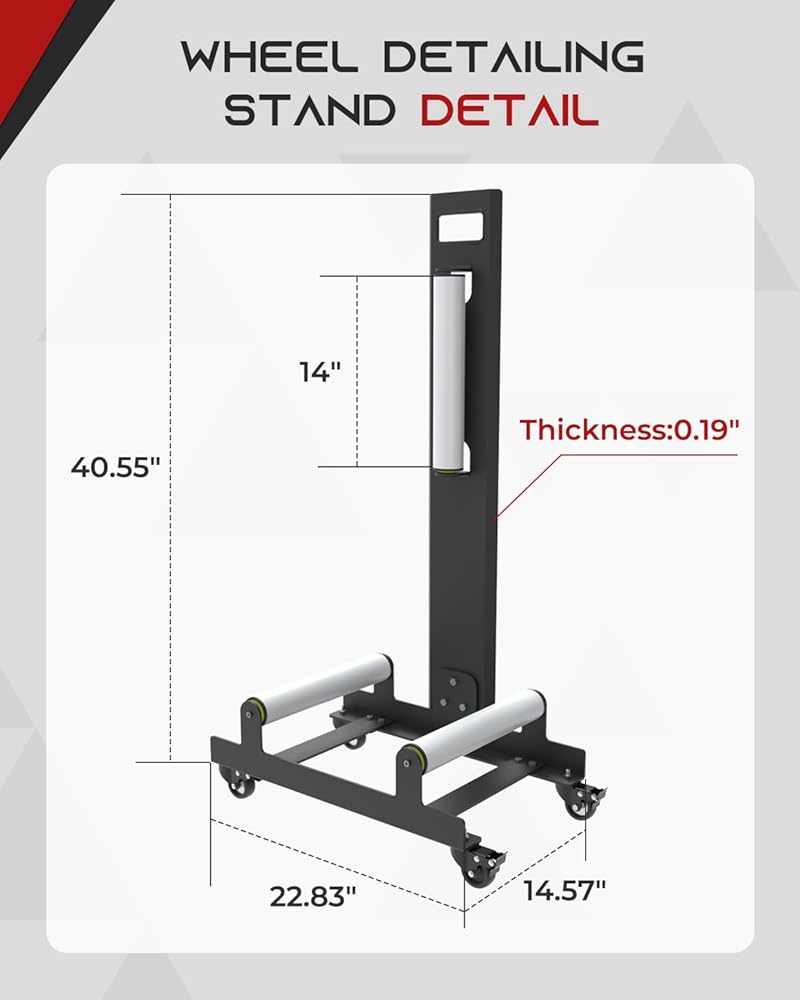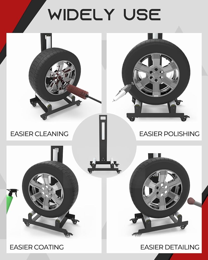 • 𝐌𝐨𝐛𝐢𝐥𝐞 𝐃𝐞𝐭𝐚𝐢𝐥𝐢𝐧𝐠 𝐚𝐧𝐝 𝐆𝐚𝐫𝐚𝐠𝐞 𝐅𝐫𝐢𝐞𝐧 𝐝𝐥𝐲: سواء كنت من محبي التفصيل المتنقل أو لديك مرآب مخصص لتفاصيل السيارة، فإن حامل العجلات الخاص بنا مثالي لكلا السيناريوهين. إنه صغير الحجم بما يكفي للتعليق على الرف ولكنه قوي بما يكفي للوقوف بمفرده، مما يوفر الراحة والتنوع.