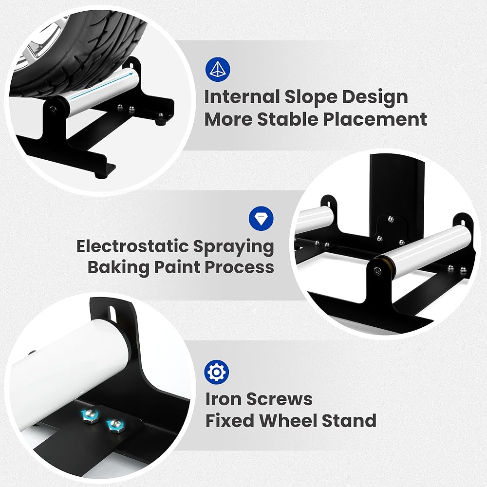 توفير الوقت: يقوم الحامل برفع إطارات السيارة عن الأرض ويبقيها على ارتفاع مريح للعمل. يمكنك إنجاز المهمة بشكل أسرع من خلال تدوير العجلات 360 درجة مما يوفر وقت العمل.