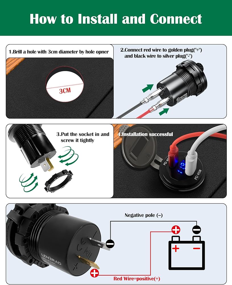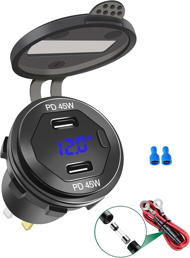 [منافذ USB مزدوجة] مزود بمقبس شاحن USB 3.0 وPD 3.0 عالي الجودة، ومنفذ USB 12 فولت يشحن جهازين متوافقين في وقت واحد أسرع بما يصل إلى 4 مرات من الشحن التقليدي.