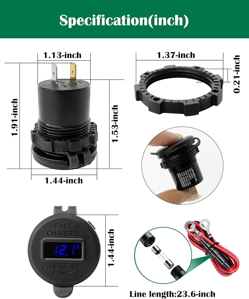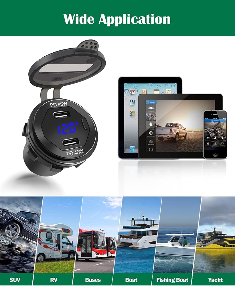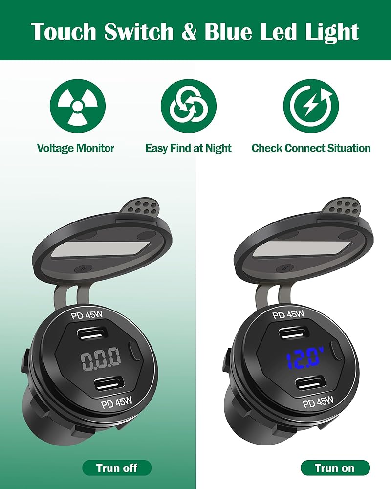 [حماية شاملة]: منفذ USB معتمد من CE وROHS مع حماية من التحميل الزائد والتيار الزائد والدائرة القصيرة لضمان سلامة الشحن، ويحمي شاحن USB سلامة أجهزتك. غطاء USB مطاطي مقاوم للماء والغبار يحمي دائرته الداخلية بشكل أفضل ويعزز عمره الافتراضي بشكل فعال.