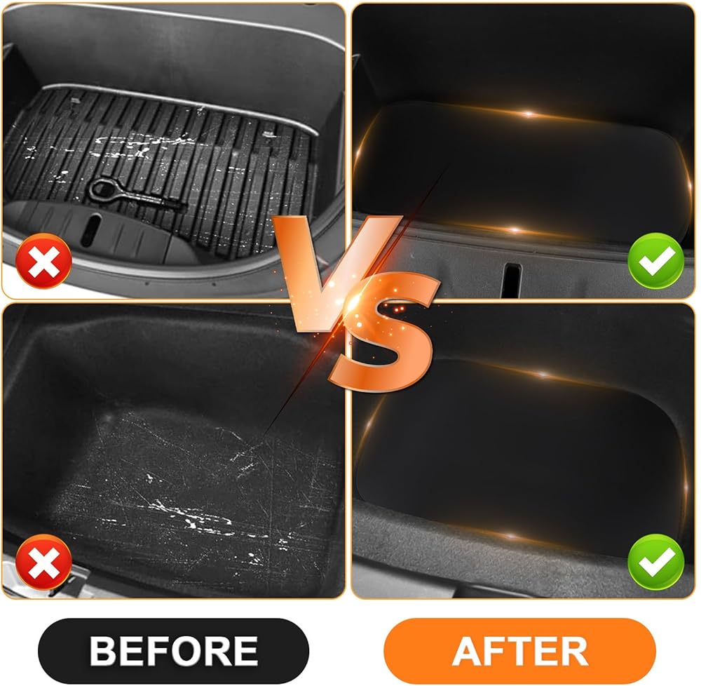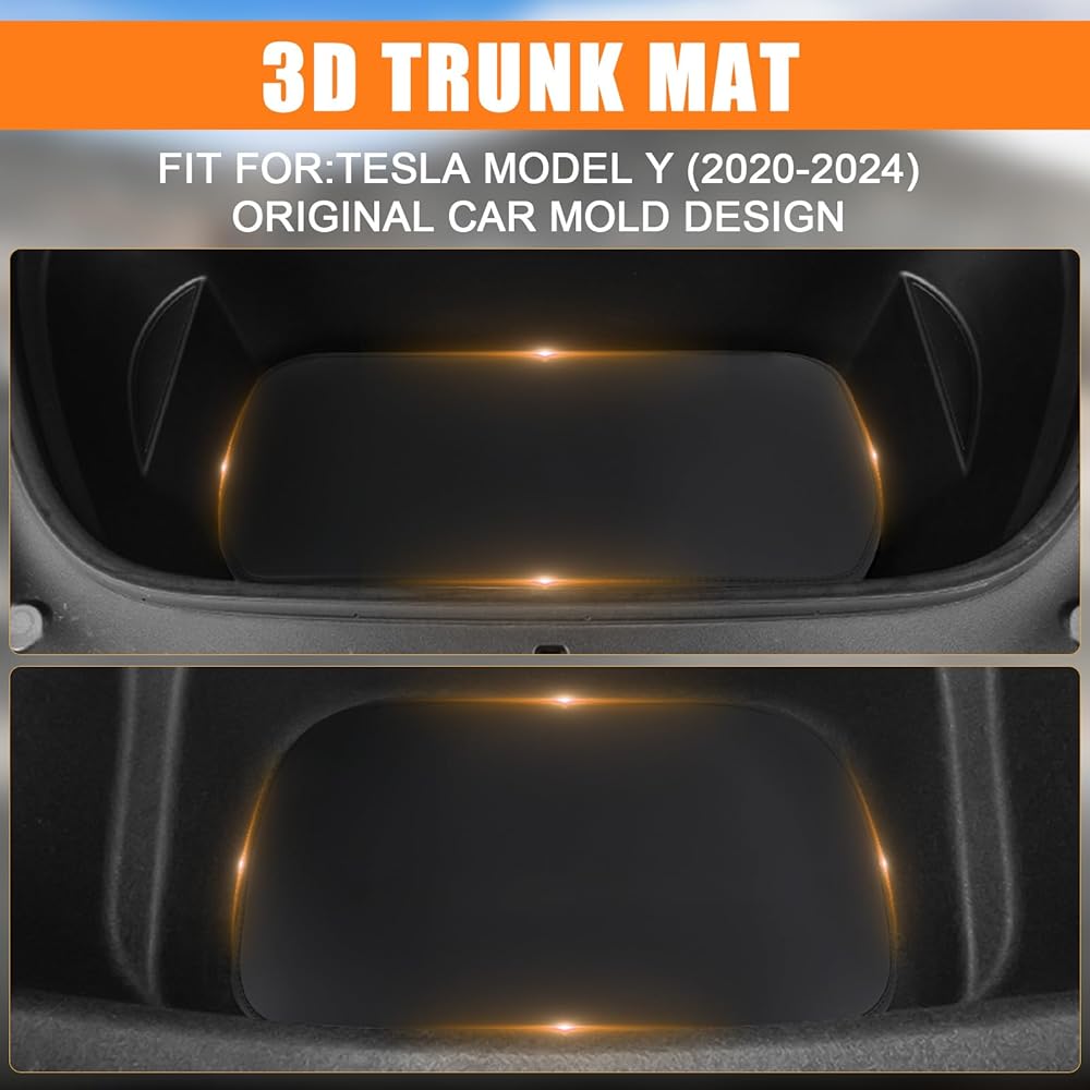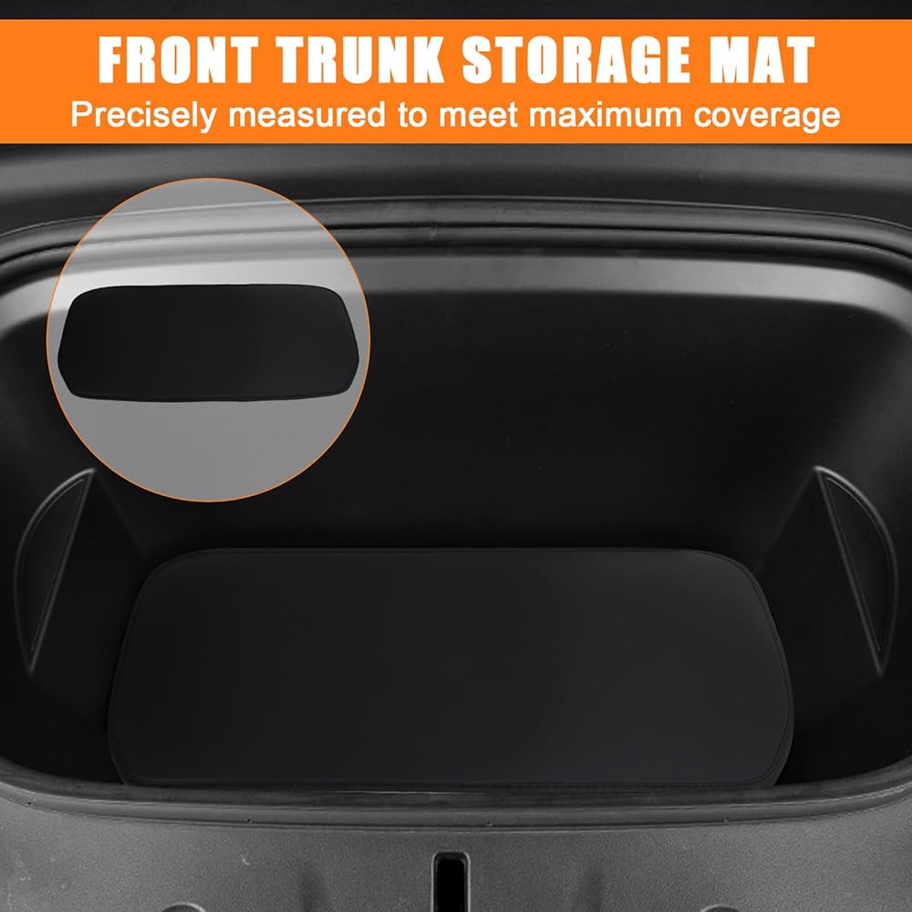 حصيرة تخزين صندوق السيارة الأمامي والخلفي متوافقة مع طراز Tesla موديل Y 2017-2023، جلد نابا مناسب لجميع الأحوال الجوية وبطانة سفلية مخصصة (ليس للطراز 3) (أسود)
