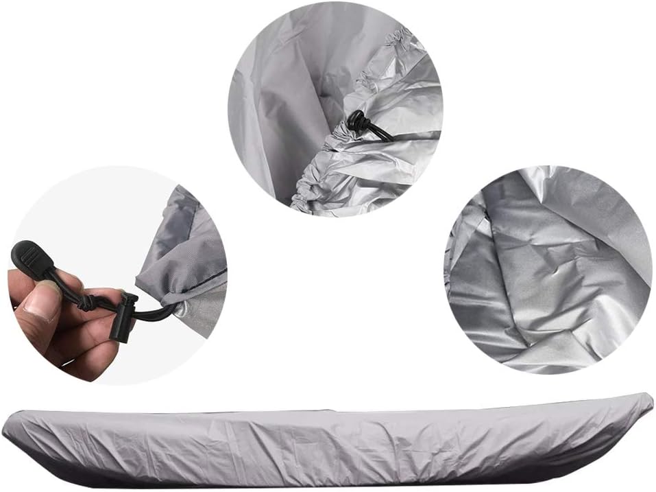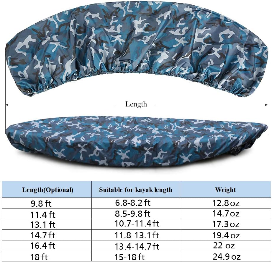 • ✦The kayak covers for outdoor storage is light and easy to operate, adjustable for kayaks of 6.8ft-16.4ft length. Please NOTE this kayak cover allows width up to 35.5in.