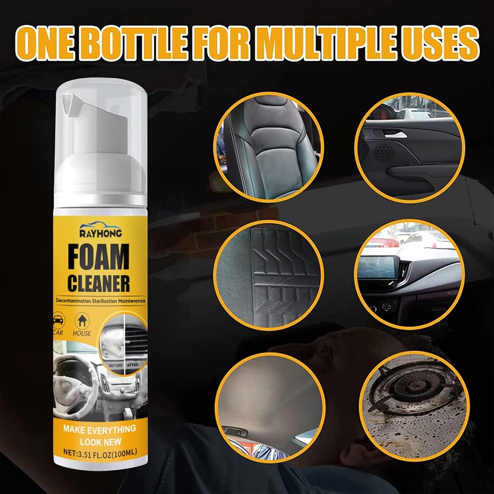 【منظف رغوي متعدد الأغراض】: يمكن استخدام منظف رغوي السيارة متعدد الوظائف في كل جزء من أجزاء السيارة. اجعل التصميمات الداخلية لسيارتك تبدو وكأنها جديدة.