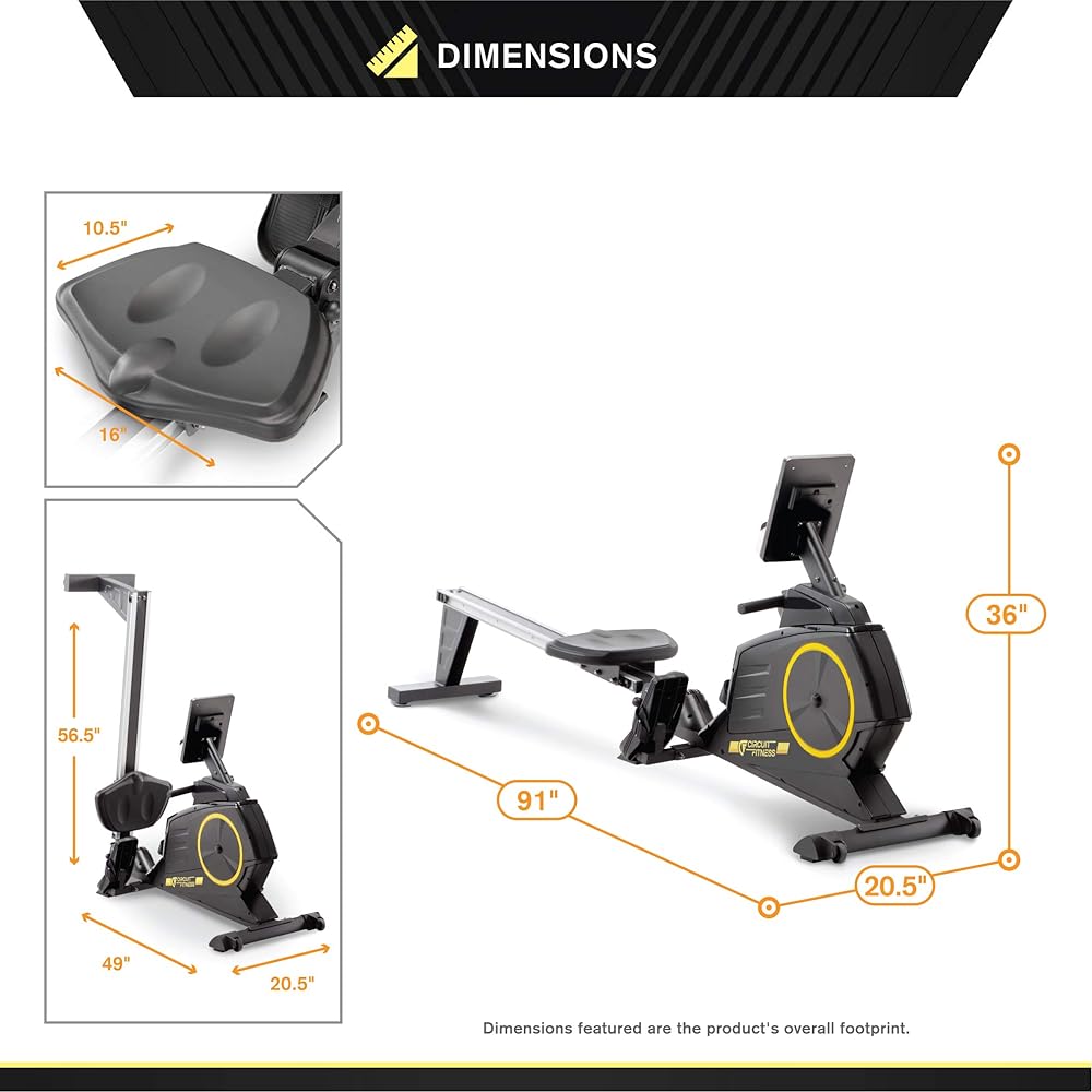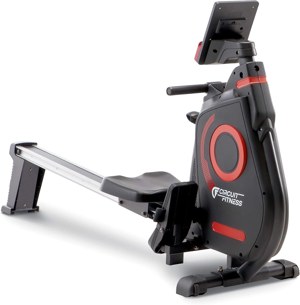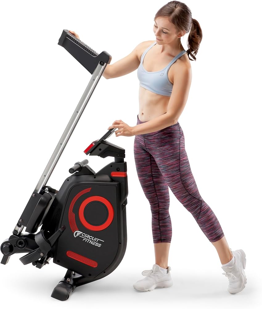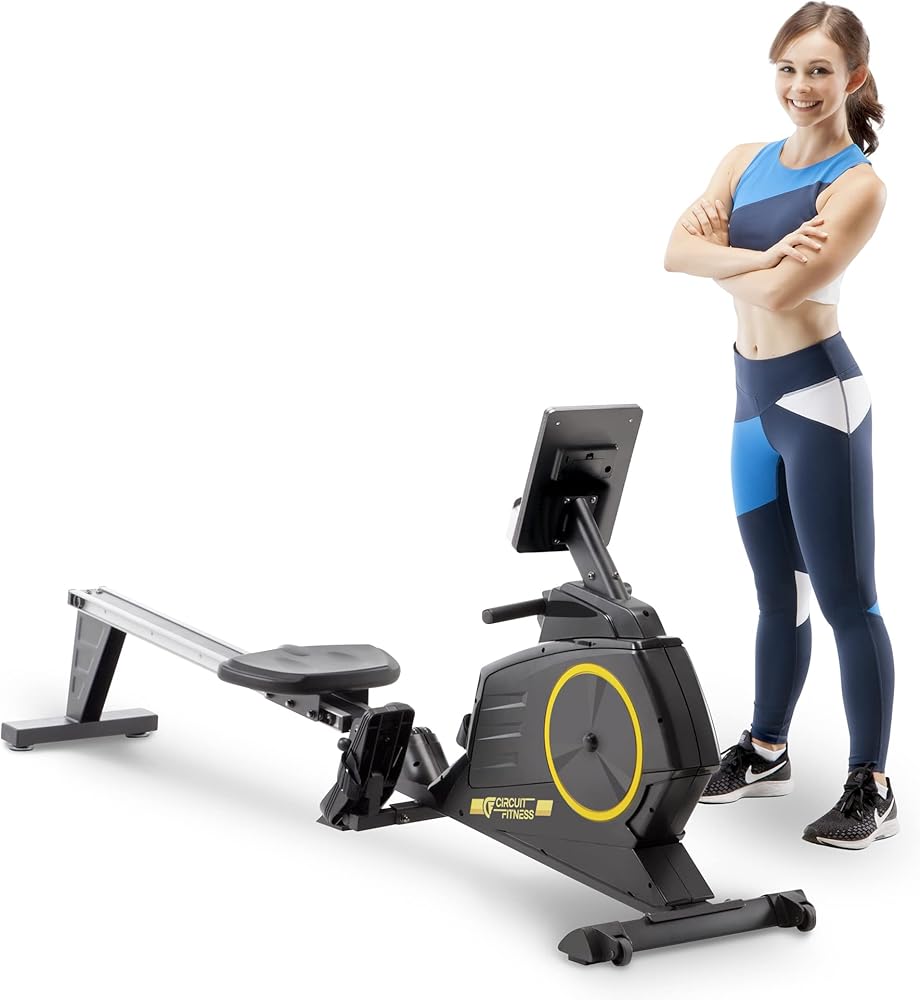 Condition your upper and lower body and get a fitter physique while increasing your cardiovascular endurance with the Circuit Fitness Magnetic Rowing Machine! Manufactured with quality precision using premium-grade solid steel that ensures the perfect rowing balance, this powerful rowing machine is engineered with a 9-lb. flywheel, offering eight levels of resistance for a customizable and satisfying cardio workout. Its eight resistance levels control the tension for a consistent flow of rowing. Its magnetic resistance options can be easily adjusted, giving every individual the benefit of regulating the levels according to their needs and preferences. The ergonomically designed contoured foam seat pad makes sure you stay comfortable and hassle-free throughout your workout. It also features foam-covered handles made with an anti-slip finish, letting you focus on your routine. Made to accommodate a wide range of fitness enthusiasts, the multi-angle monitor and adjustable foot pedal straps provide a customizable fit. Easily track your progress and monitor your pace. This exercise rowing machine is engineered with a digital LCD screen display that monitors your workout progress by displaying time, count, distance, calories burned, and RPM. This stationary rowing machine requires minimal floor space thanks to its sleek and uncomplicated frame. Quickly transport and move the unit without exerting too much effort. The Circuit Fitness AMZ-979RW Rowing Machine is enhanced with wheels that enable quick and hassle-free transportation. The Circuit Fitness Magnetic Rowing Machine accommodates users of up to 300 pounds. Its assembled dimensions measure 72 inches long, 19 inches wide, and 38. 5 inches high, while the folded dimensions are 36 inches long, 19 inches wide, and 53. 5 inches high.