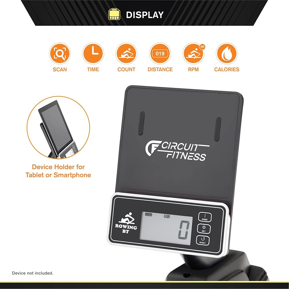 Durable mold-injected seat – the Circuit Fitness rowing machine is made with a durable ergonomically designed mold-injected seat that allows users to exercise comfortably and safety.