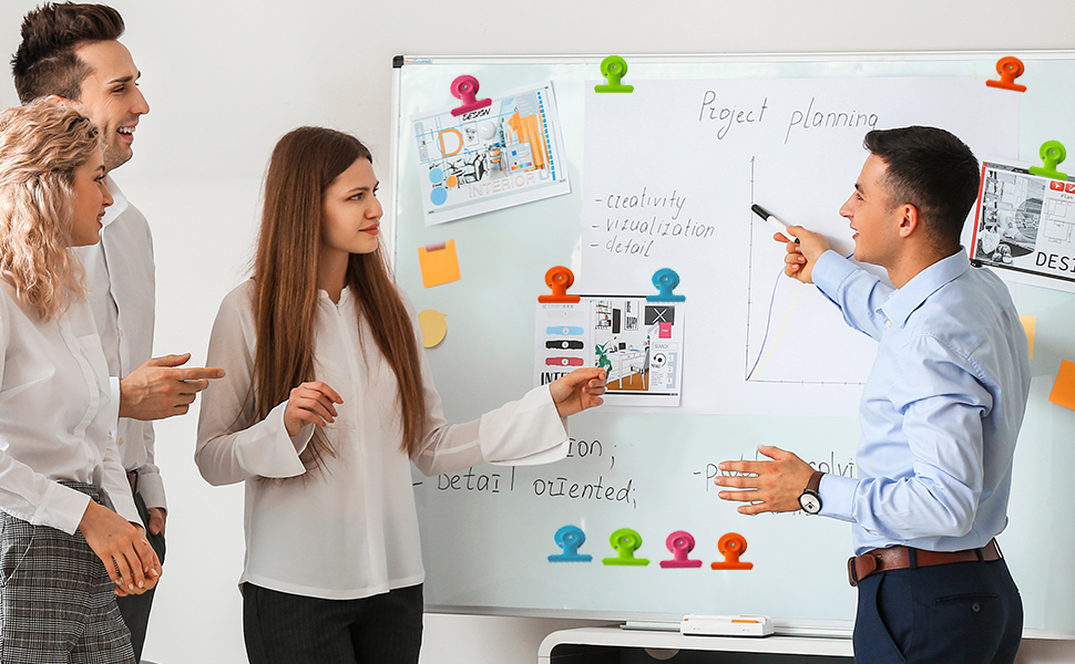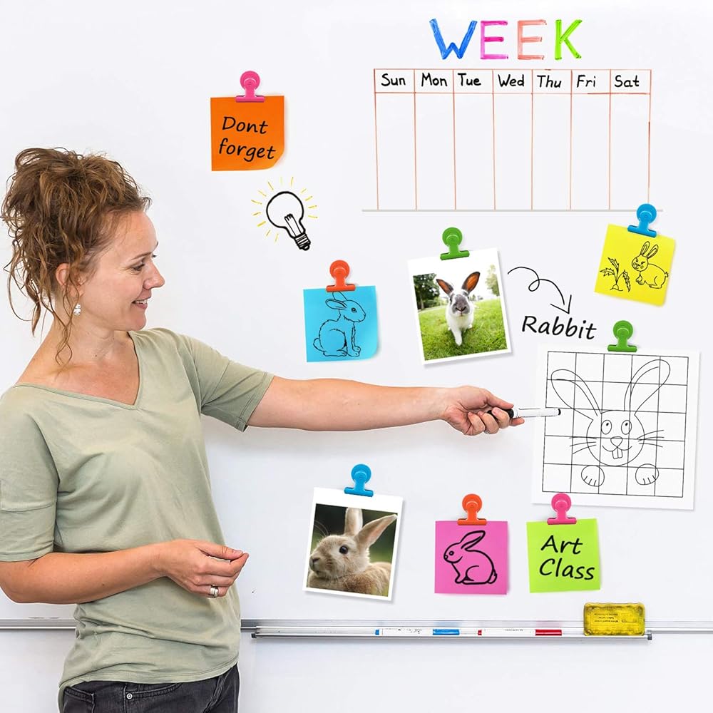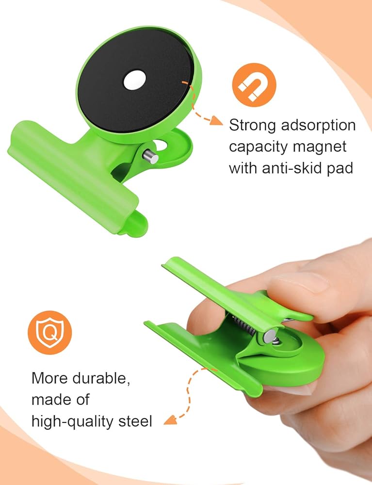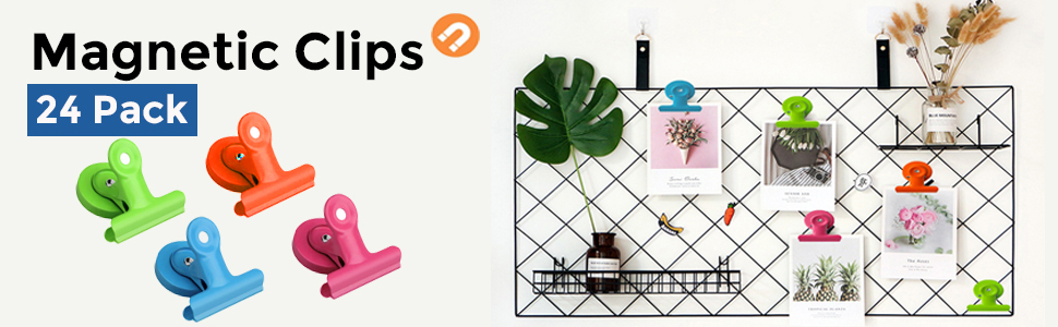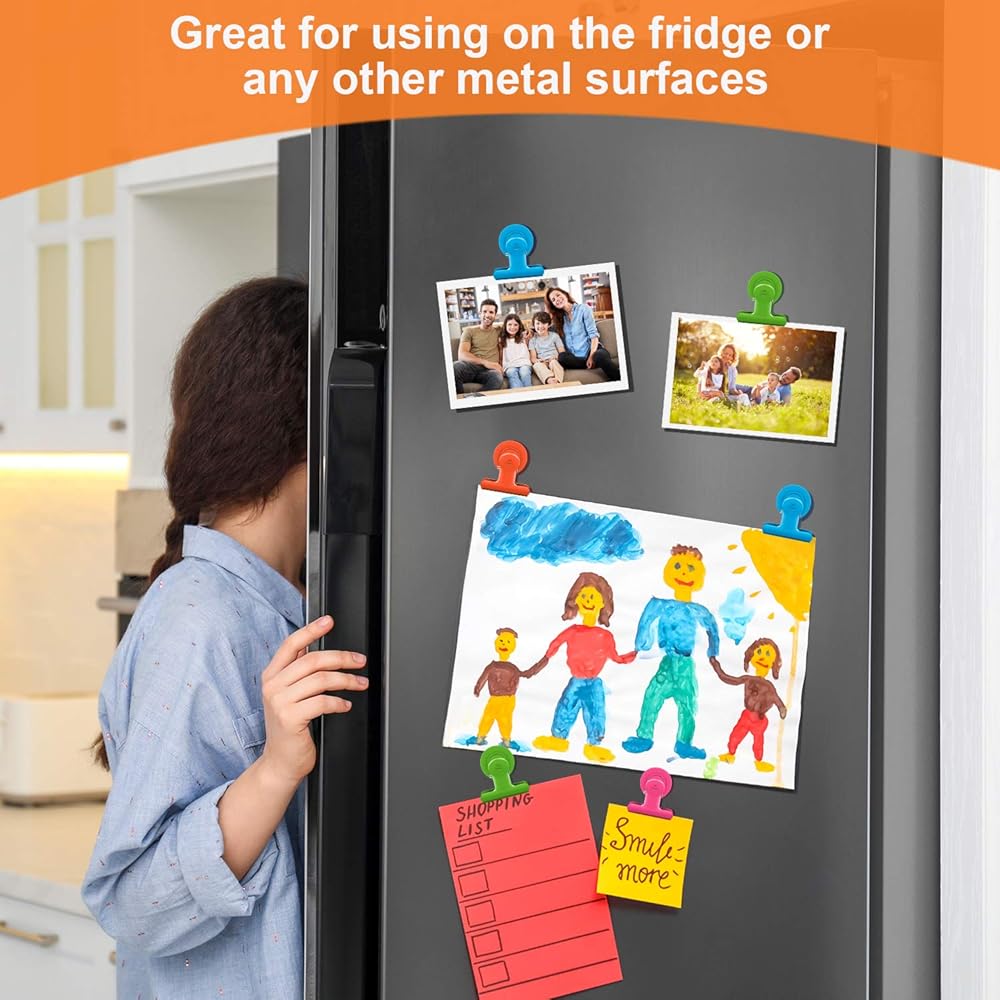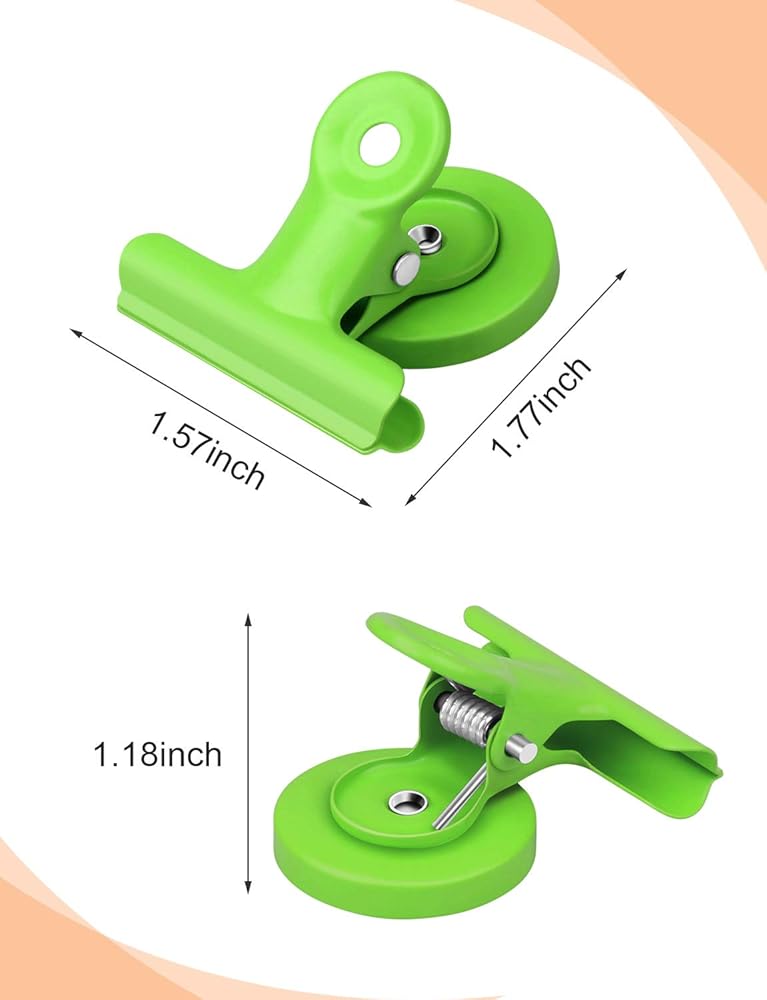 تعتبر المشابك المغناطيسية الملونة مثالية لنشر الصور والملاحظات وقوائم التسوق والفواتير لجذبها إلى ثلاجتك أو اللوحة البيضاء أو مكتب الخزانة المعدنية أو أي سطح معدني آخر.