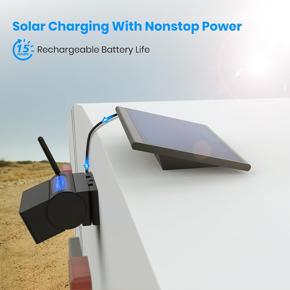 【كاميرا احتياطية لاسلكية تعمل بالطاقة الشمسية لتقليل الشحن المتكرر】يمكن شحن نظام الكاميرا RV اللاسلكي مع لوحة شمسية بكفاءة في أوقات الفراغ المختلفة خلال الأيام المشمسة عند القيادة، استمتع بتجربة خالية من المتاعب وصديقة للبيئة. أو يمكن تشغيل الكاميرا الاحتياطية الشمسية عبر منفذ USB في الشتاء أو في أوقات قلة ضوء الشمس.
