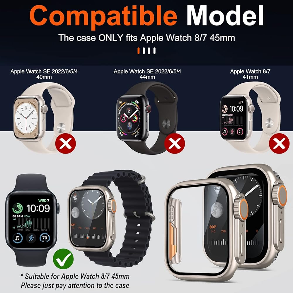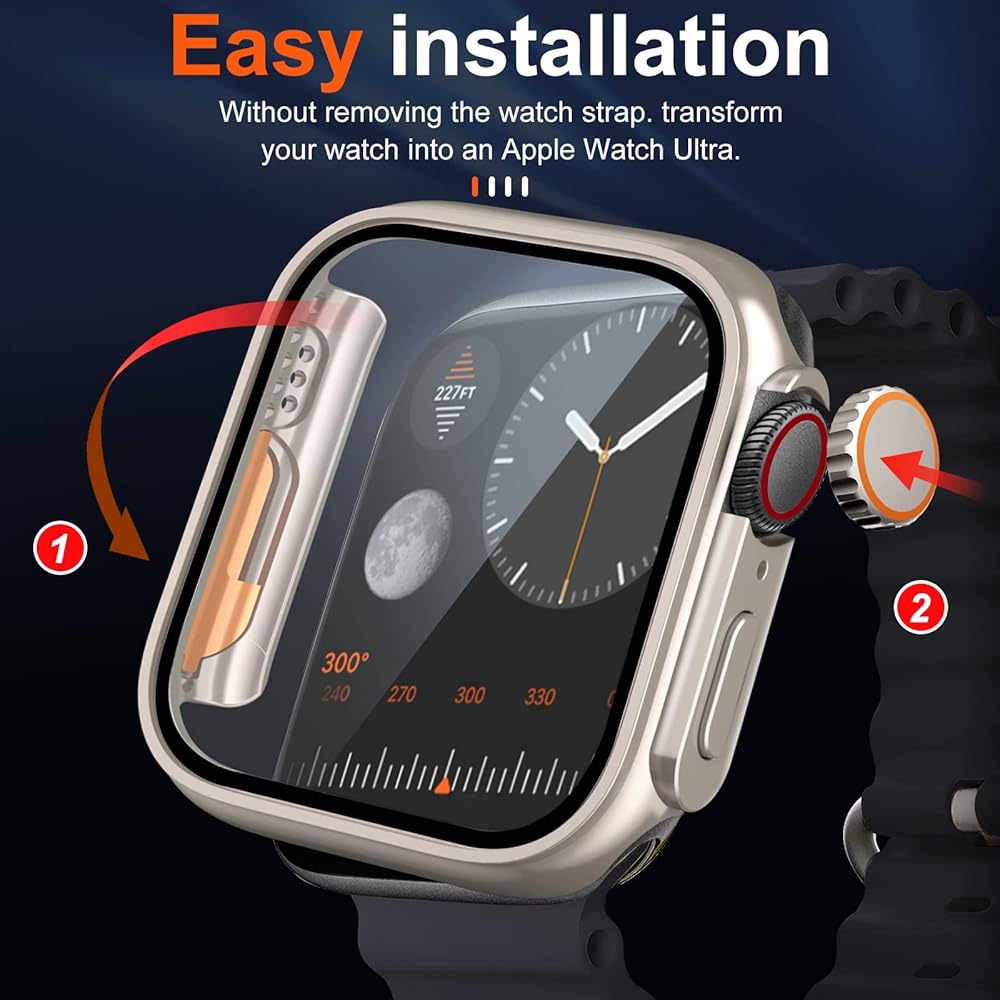 • 🍎【ميزات المنتج】يغير مظهر حافظة Apple watch7/8 مقاس 41 ملم فائقة الحجم ساعة Apple Watch 41 ملم إلى حافظة Apple Watch Ultra 49 ملم. وحماية التغطية الكاملة تحمي تمامًا ساعة Apple الخاصة بك من الخدوش والصدمات والسقطات العرضية. حافظة واقية للشاشة من الزجاج المقسى تقدم جودة صورة أصلية واضحة وحساسية اللمس الأصلية.