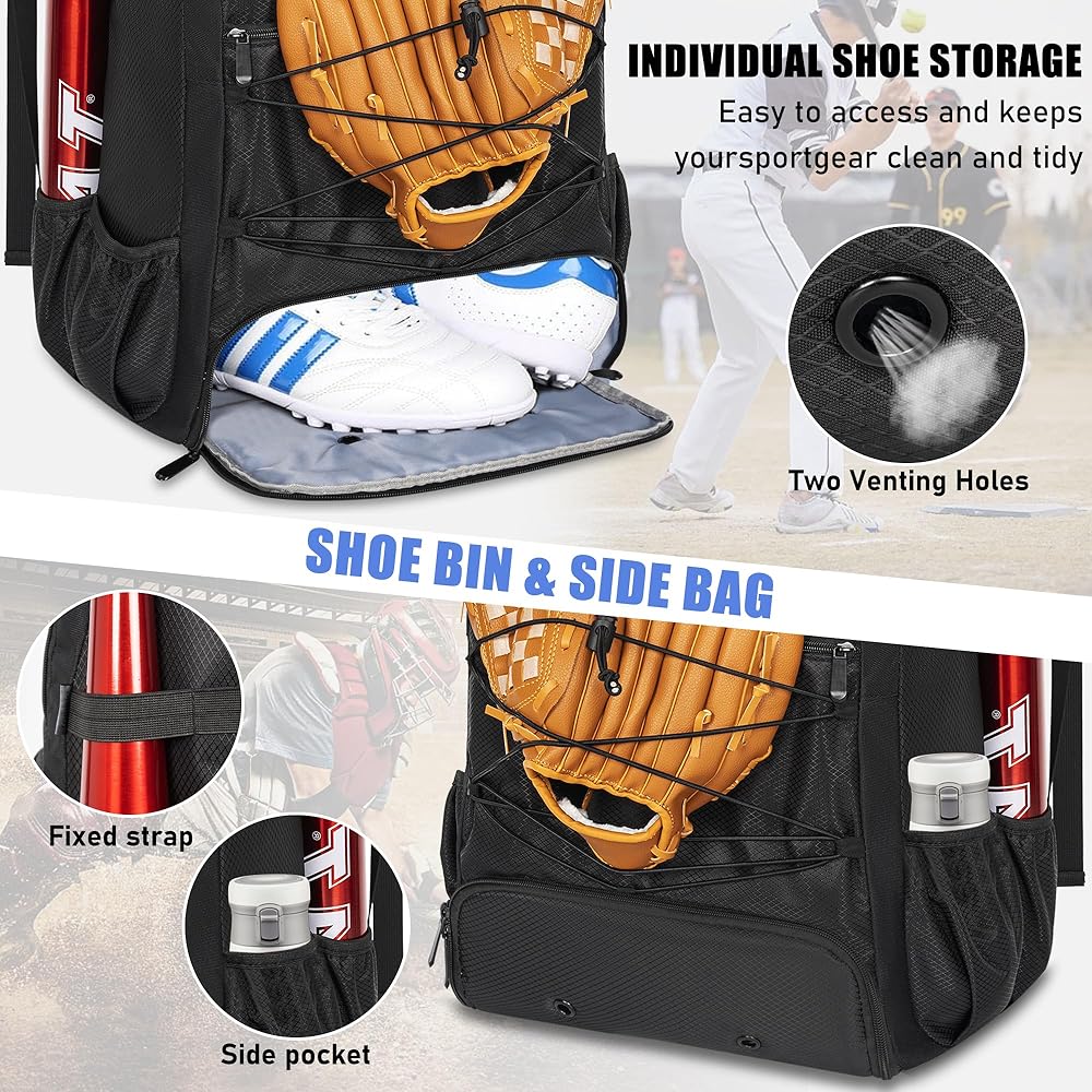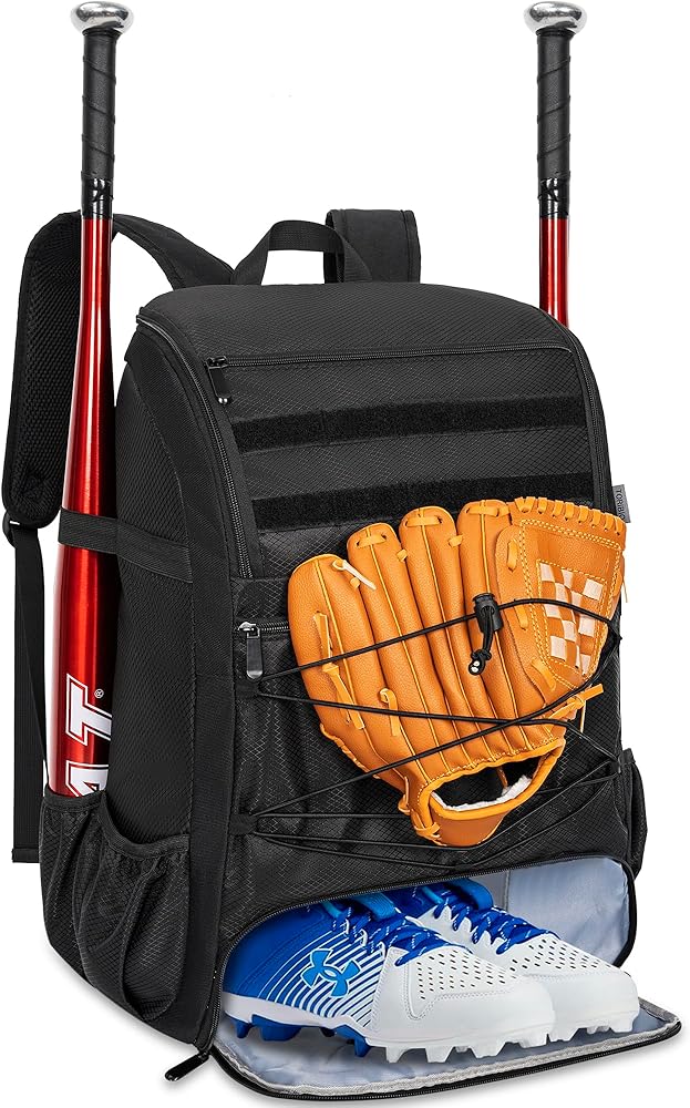 حقيبة مضرب البيسبول من توريبيو، حقيبة ظهر لمعدات البيسبول مع حجرة للأحذية، للبيسبول وكرة تي والكرة اللينة، تحمل مضرب وخوذة وقفاز