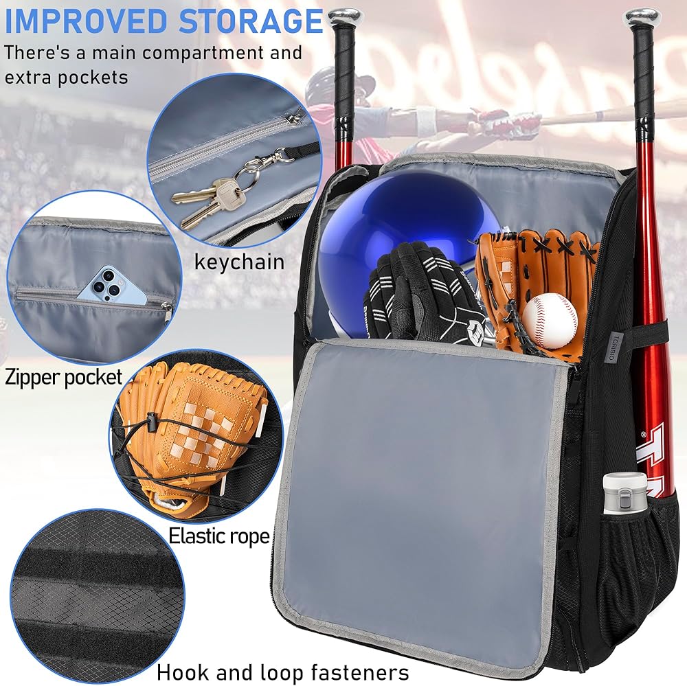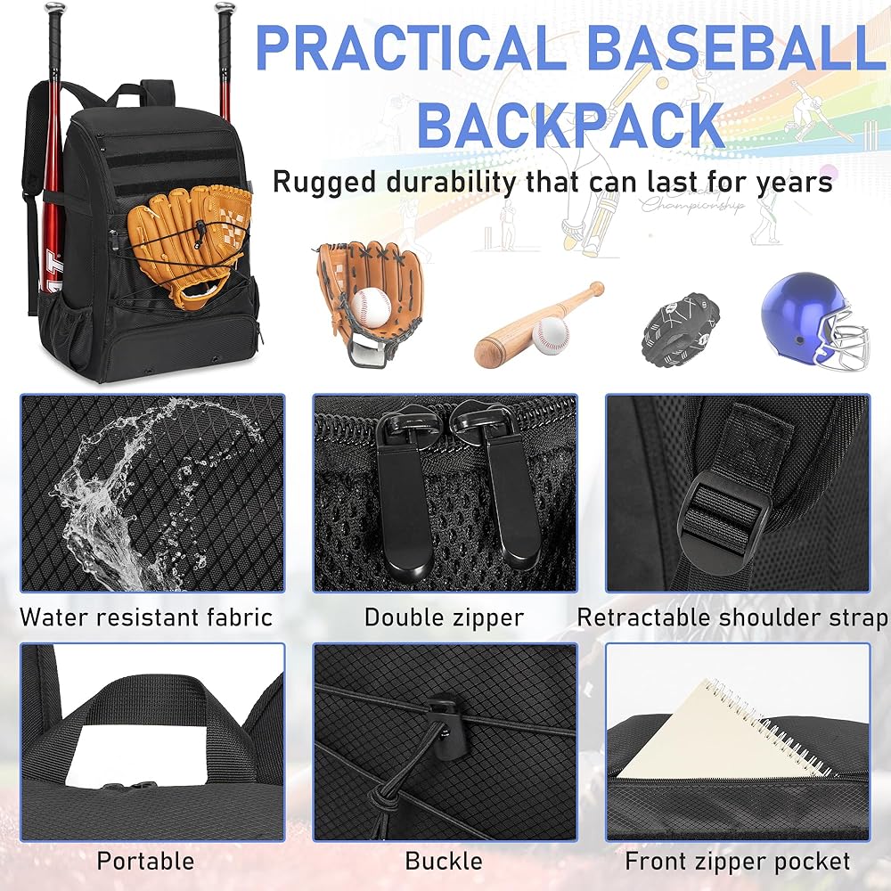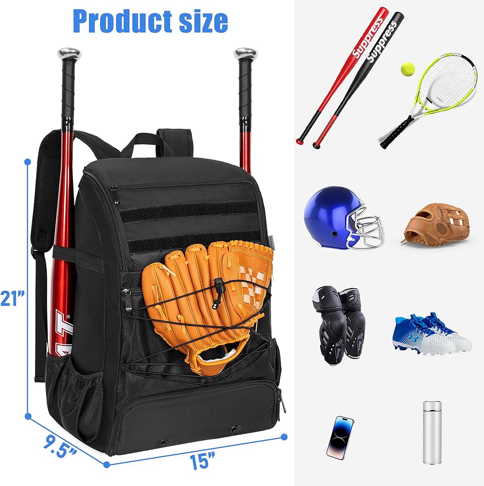 • 🏏【سعة كبيرة】: 15 بوصة × 9.5 بوصة × 21 بوصة. هناك مساحة كبيرة لجميع معدات البيسبول الخاصة بك. يمكن للحجرة الرئيسية تخزين خوذة البيسبول وقفازات الضرب وقفازات الملعب وغيرها من الملحقات الرياضية. مناسبة لكل من يحب الرياضة .