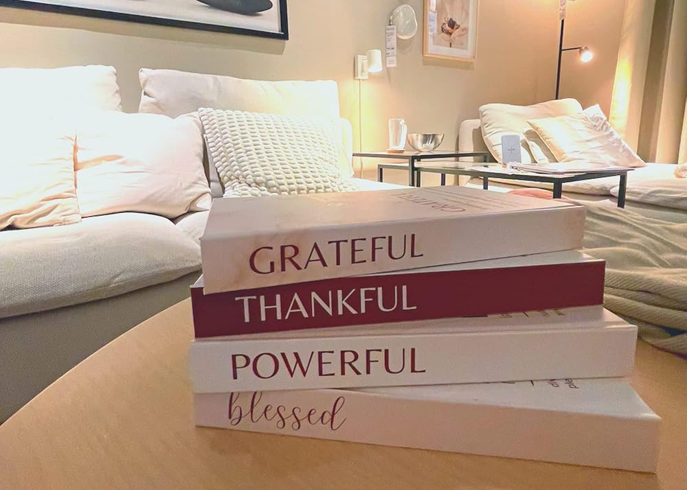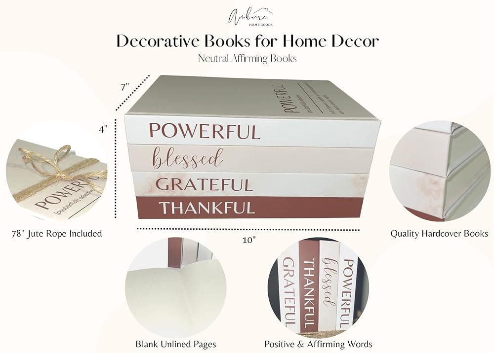 • [Motivational, Positive, Simple and Neutral Design] This set contains four books with affirming and positive words, a perfect way to both motivate and encourage you while also doubling as a boho decorative accent.