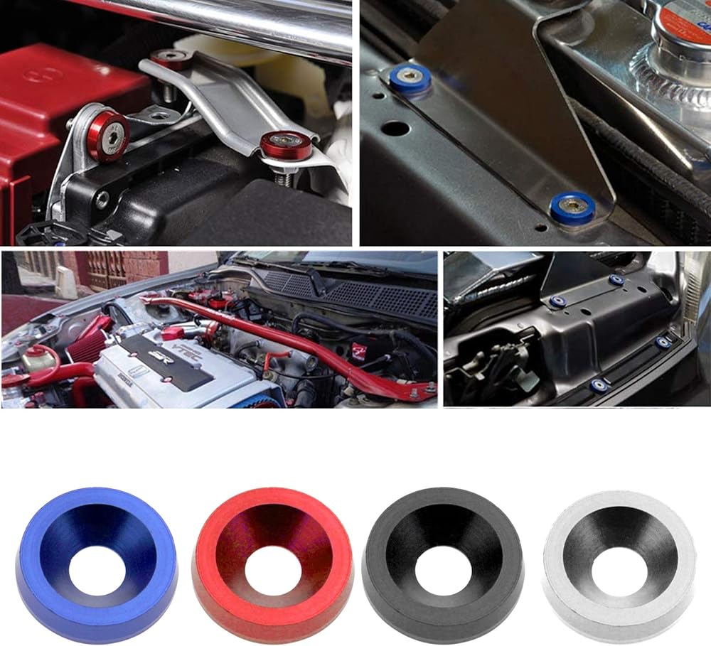 This auction features one complete set of Fender Bumper Engine Bay Washers in powder-coated anodized finish.