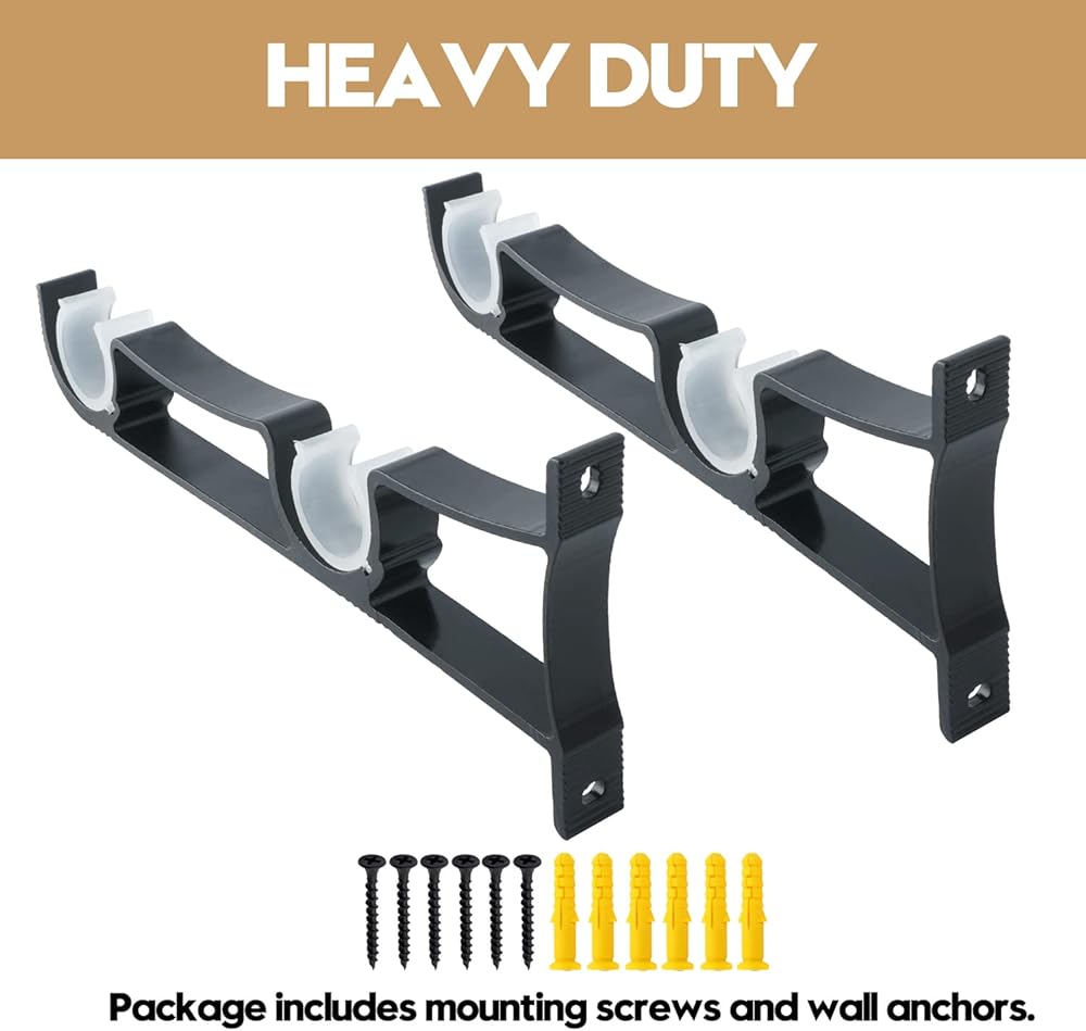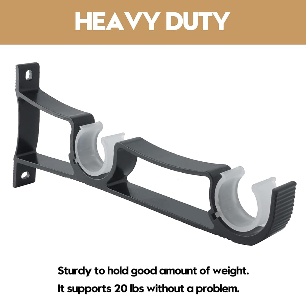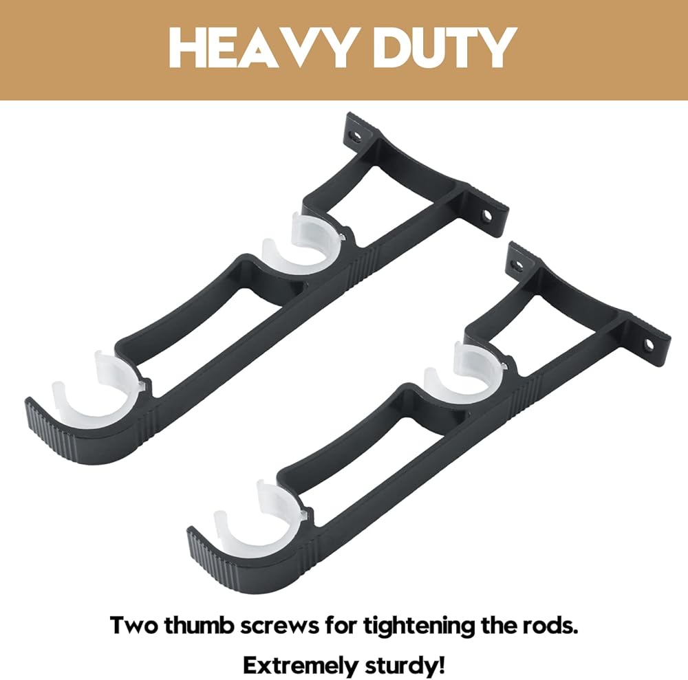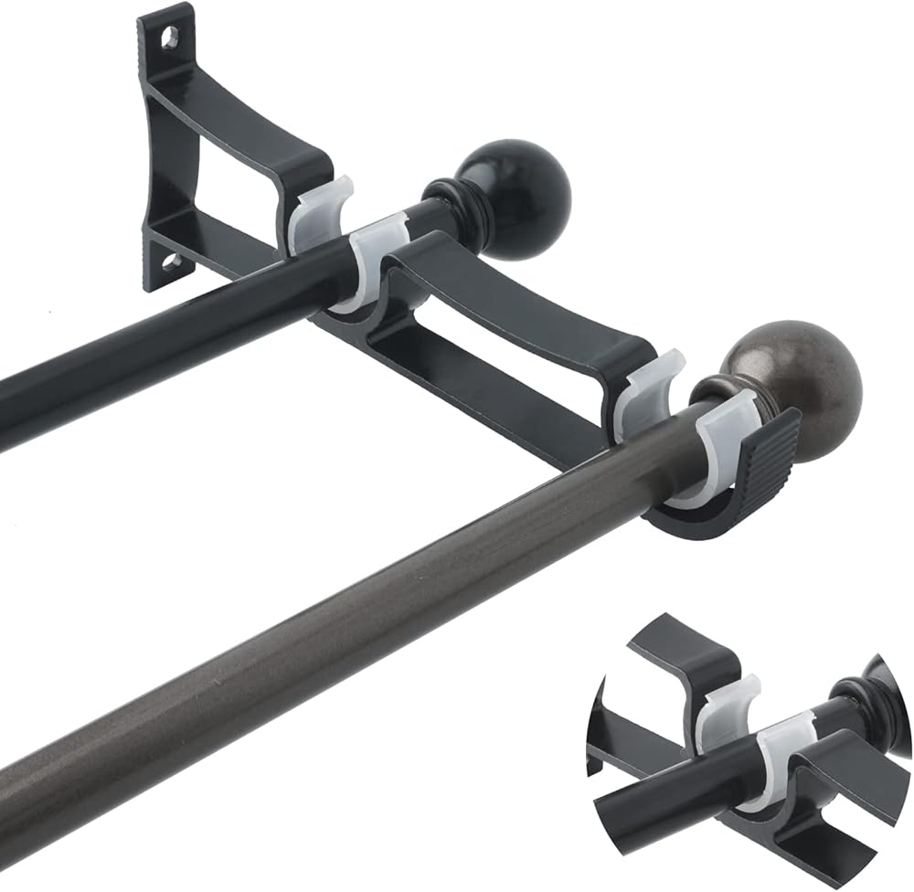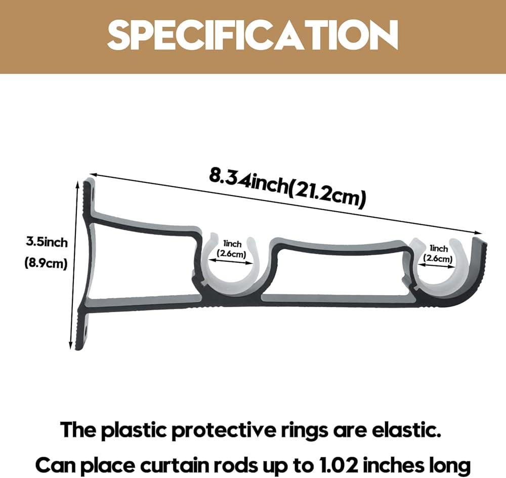FEATURES:Double curtain rod bracket designed with removable buckle at cups, can fix the curtain rod tightly and prevent scratch the rod when sliding curtains.