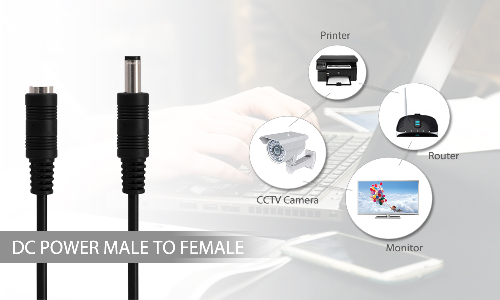 - يمكن استخدامه كسلك تمديد للتيار المستمر عندما تجد أن كابل إمداد الطاقة بالتيار المستمر الخاص بك ليس طويلاً بما يكفي