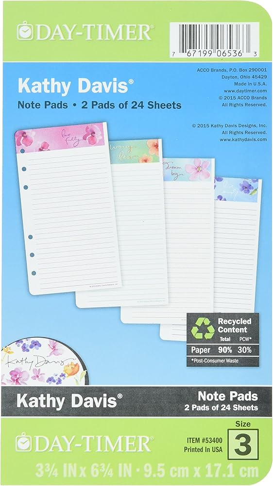 إعادة تعبئة دفتر ملاحظات مؤقت يومي، 3-3/4 بوصة × 6-3/4 بوصة، حجم محمول، كاثي ديفيس (53400)