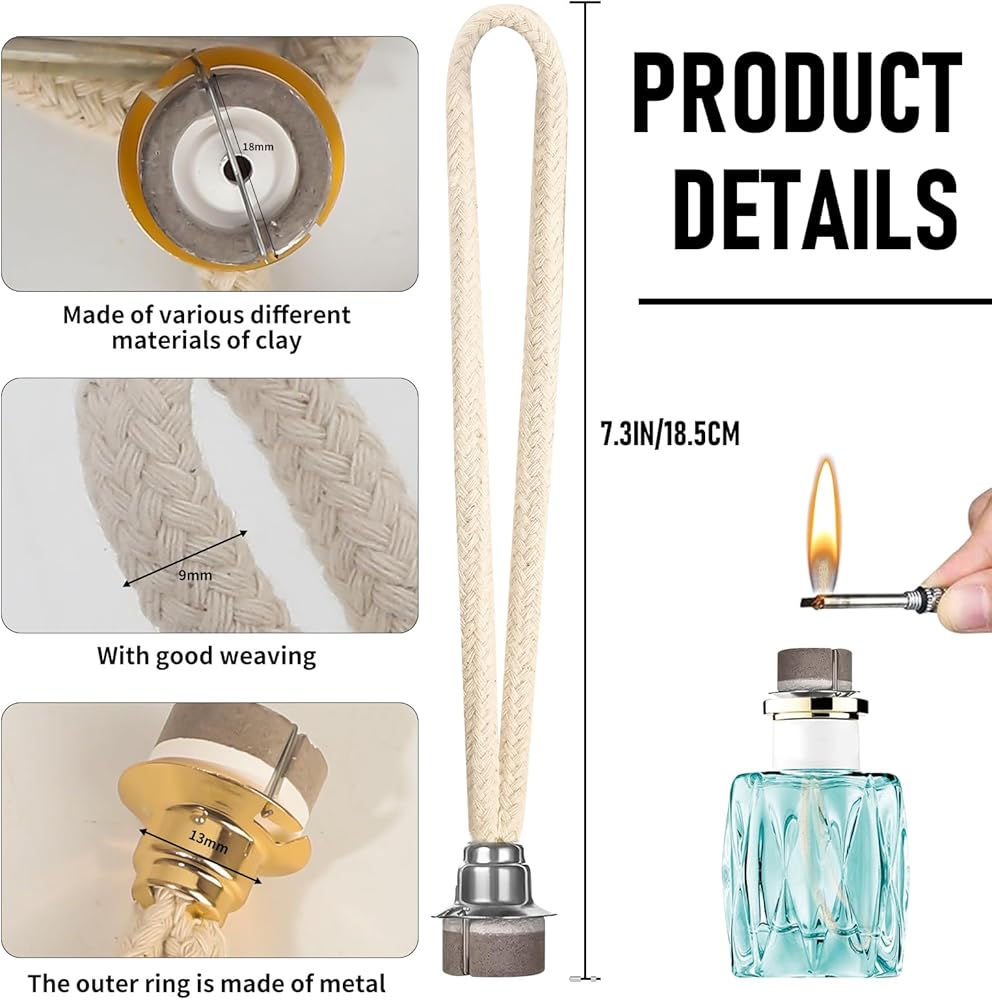 حجم معقول: بطول 7.3 سم، يضمن فتيل مصباح الزيت هذا إمدادًا ثابتًا بالوقود، مما يطيل مدة تجربتك العطرية ويعزز وقت الاسترخاء. يضمن حجمه المعقول التوافق مع معظم المصابيح القياسية، مما يسمح لك باستبدال فتائلك القديمة بسهولة دون الحاجة إلى أي متاعب أو تعديل.
