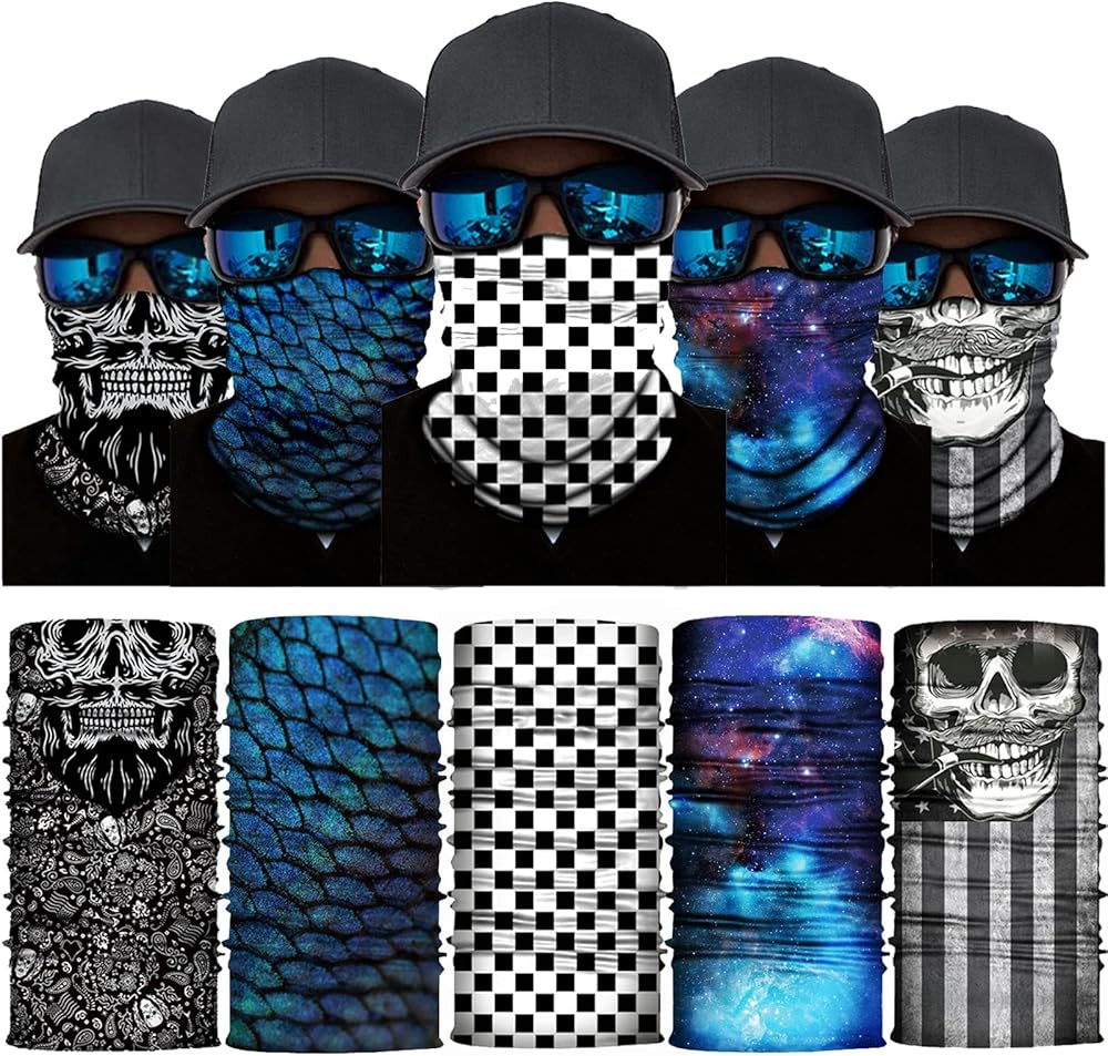 مجموعة الدراجات النارية 10 قطع، 5 نظارات للتزلج على الدراجة الترابية للحماية من الأشعة فوق البنفسجية ومضادة للغبار والرياح مع 5 أقنعة للوجه، جمجمة وشبكة ودخان ونجمة ومقياس من البوليستر