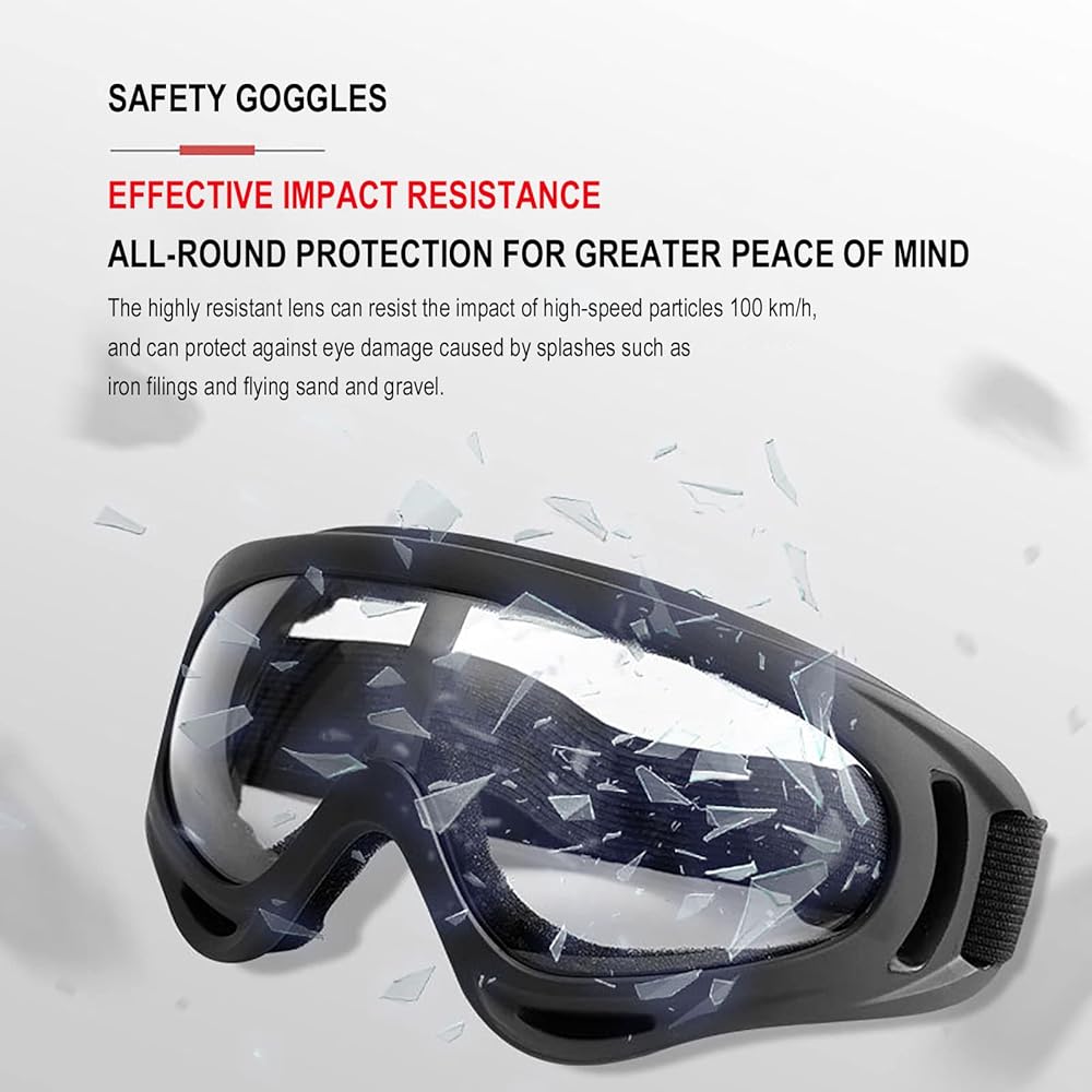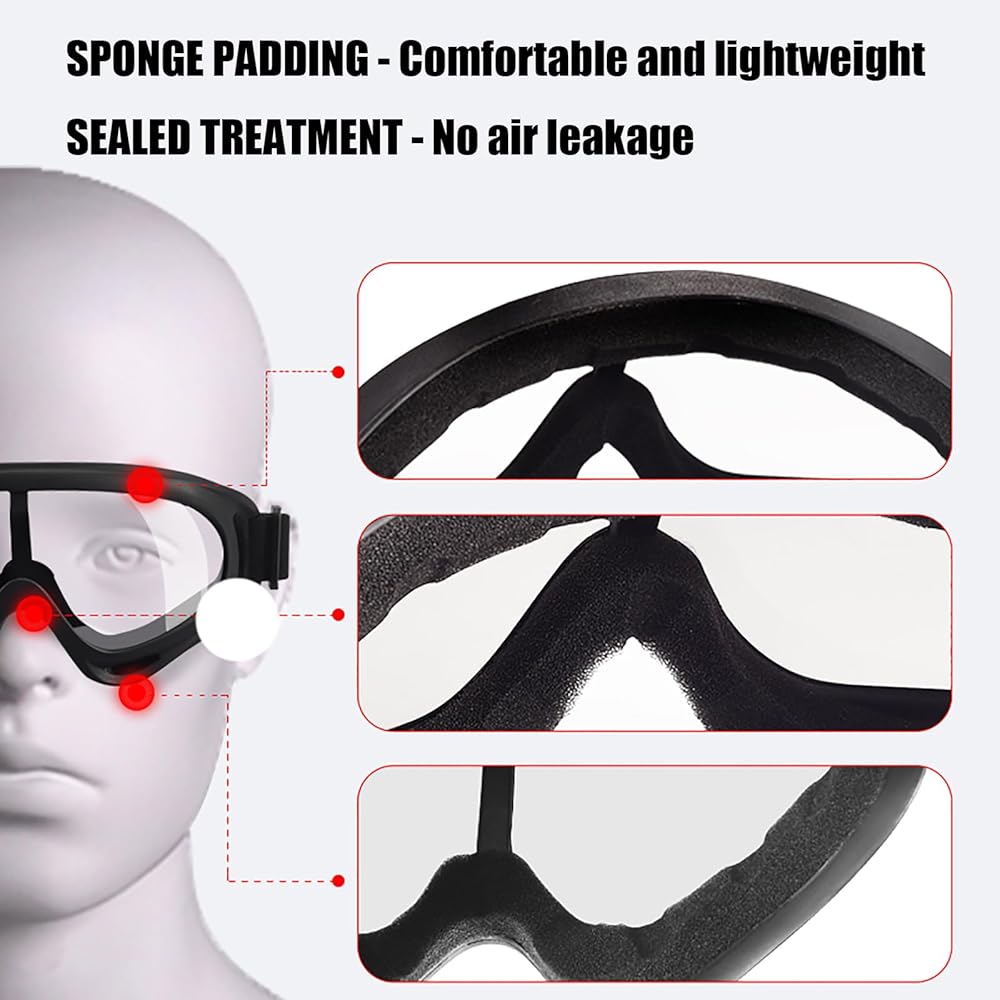 العدسات: عدسات نظارات السلامة الخاصة بالدراجة النارية مقاومة للرياح والغبار والرمال والضباب والأشعة فوق البنفسجية... مقاومة للصدمات. عدسات بانورامية عالية النقل للضوء مع حماية شاملة.