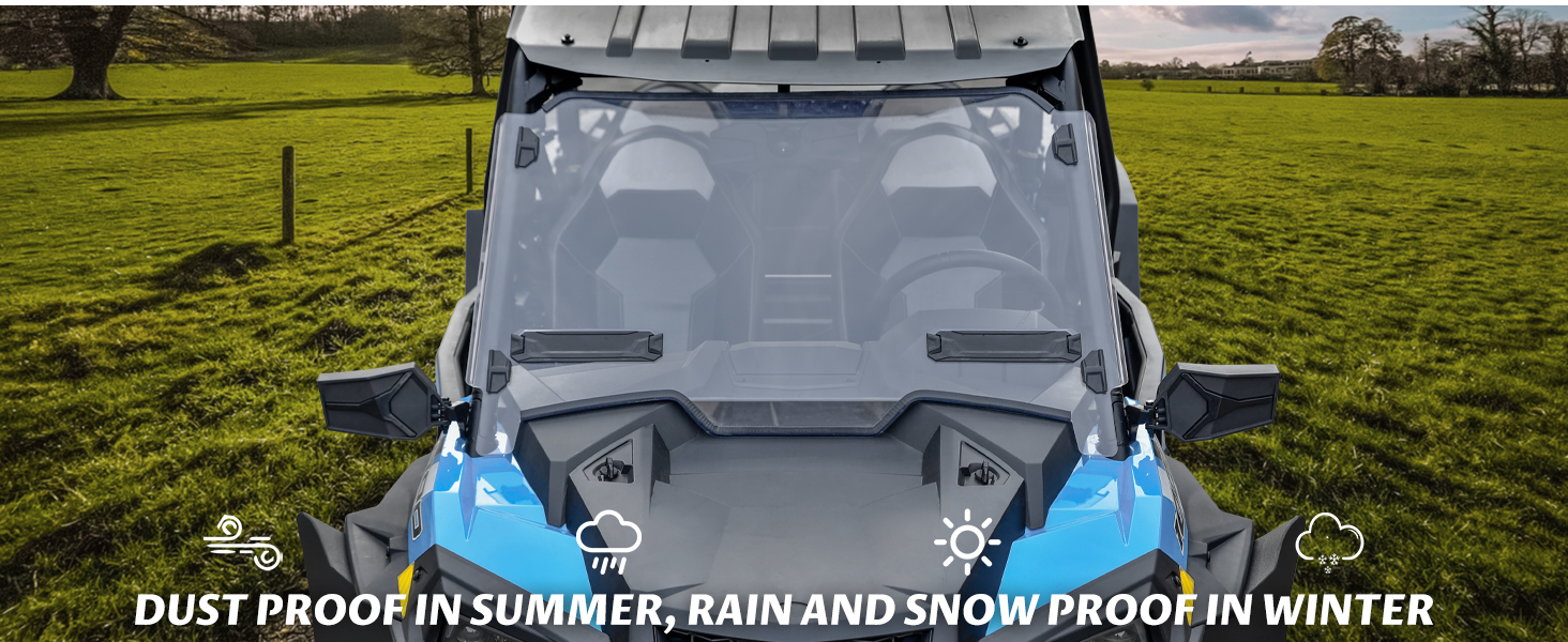يوفر الحماية الكاملة، وسدادات الحشية تمنع العناصر مثل دوامة الغبار والمطر والثلج، وتبقيك دافئًا في الشتاء، وتمنع الغبار في الصيف، وفتحتان قابلتان للتعديل تزيد من تدفق الهواء داخل الكابينة، وتجعلك تشعر بالراحة عند القيادة في أي موسم