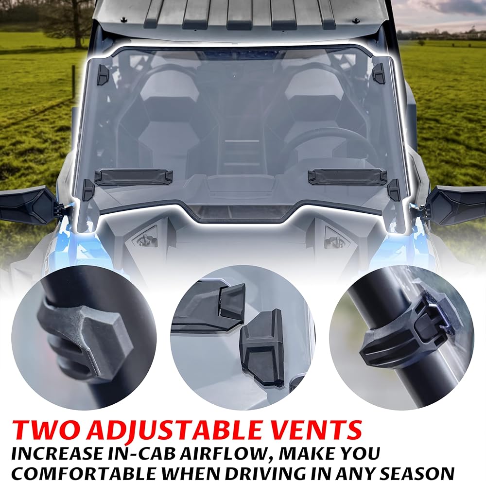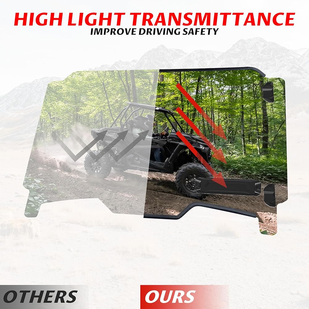 SAUTVS الزجاج الأمامي الكامل لـ 2019-2023 Polaris RZR XP 1000، زجاج أمامي شفاف من البولي كربونات ذو طلاء صلب مع فتحات قابلة للتعديل لملحقات 2019-2023 Polaris RZR XP 1000/XP 4 1000/RZR XP Turbo