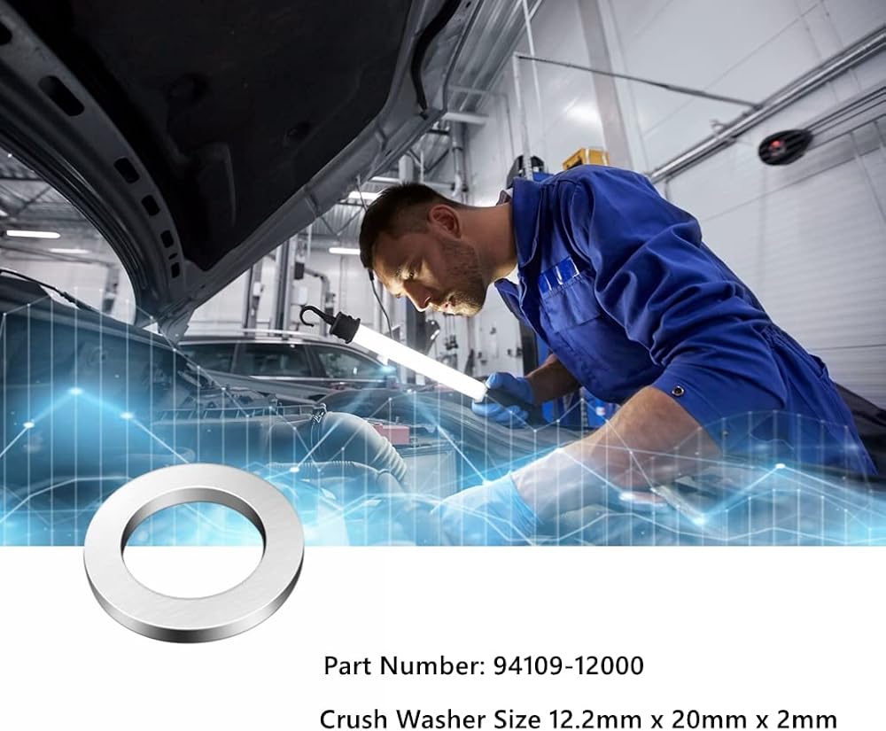 - رقم القطعة 94109-12000، حجم غسالة السحق 12.2 مم × 20 مم × 2 مم. حجم شريط الختم 5 م × 0.75 مم × 12 مم.