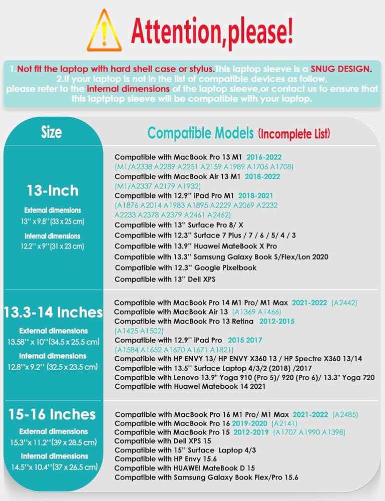 متوافق مع 2022 2021 MacBook Pro 14 M1 Pro/M1 Max (A2442)، متوافق مع كمبيوتر محمول Surface 13.5 بوصة 5/4/3/2 (2018)/2017، متوافق مع MacBook Air 13 2012-2017 (A1369/A1466)، متوافق مع MacBook Pro 13 2012-2015 (A1425/A1502)، متوافق مع iPad Pro 12.9 بوصة الجيل الثاني/الأول 2017 2015، متوافق مع HP ENVY 13/HP Envy X360 13/HP Spectre X360 13/14، متوافق مع Lenovo Yoga 14C 2021، متوافق مع Lenovo Yoga 720/910/920، متوافق مع هواوي MateBook 14 2021، إلخ.