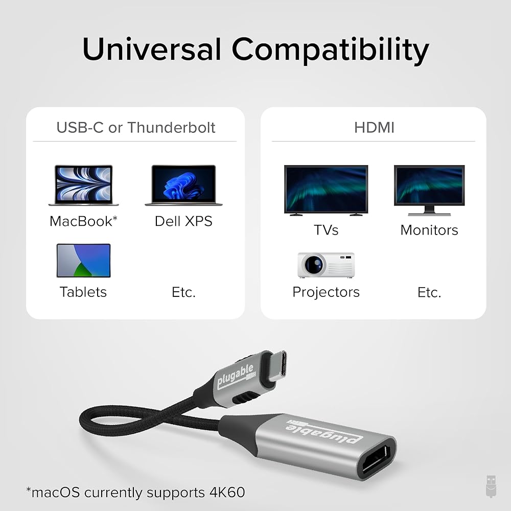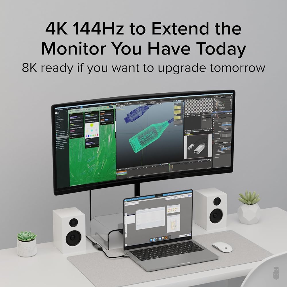 دليل المستقبل - قم بتوصيل محول HDMI إلى USB C بمنفذ USB-C أو USB4 أو Thunderbolt 4 / 3 للحصول على حركة سلسة ونقية بسرعة 4K 120 هرتز. وإذا قمت بترقية شاشتك في أي وقت، فاحصل على دقة تصل إلى 8K و60 هرتز (DSC). الحد الأقصى للدقة على نظام Mac هو 4K و60 هرتز