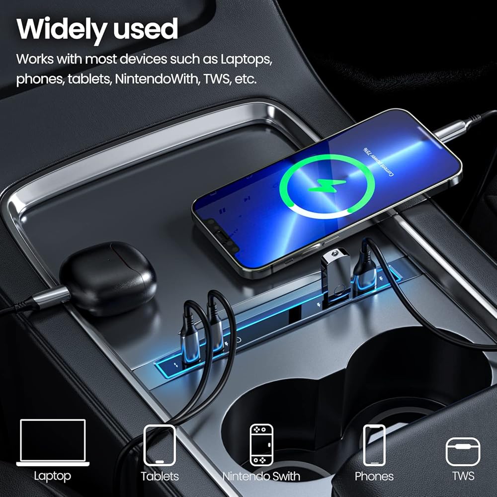 【يدعم مجموعة واسعة من الأجهزة الإلكترونية】يمكن لموزع USB طراز Tesla 3 شحن سماعات البلوتوث والهاتف والكمبيوتر اللوحي. إنه مناسب فقط لـ 2021/2022/2023 Tesla Model 3 /Model Y، يرجى التحقق من وحدة التحكم المركزية قبل الحصول عليها. إذا كانت وحدة التحكم المركزية الخاصة بك لا تدعم نقل البيانات، وبالتالي فإن المحور لا يدعم نقل البيانات.