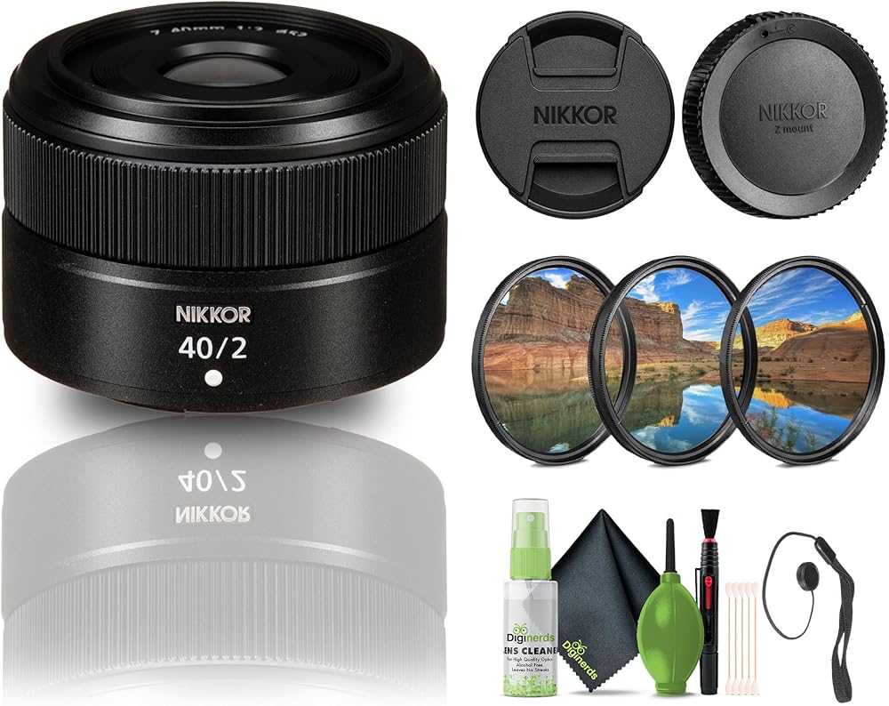 Bundle Items Include: 1 x Nikon NIKKOR Z 40mm f/2 Standard Prime Lens for Nikon Z Cameras, 1 x 52mm 3 Piece Filter Kit, 1 x Lens Cap Keeper, 1 x Cleaning Kit