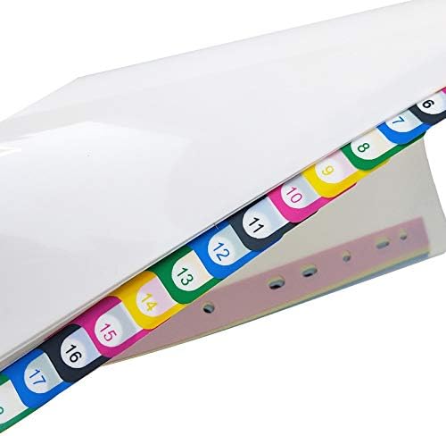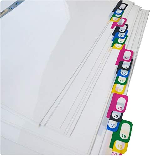 علامات التبويب المطبوعة مسبقًا عبارة عن أرقام مرمزة بالألوان لسهولة الرجوع إليها، كما أنها قابلة للكتابة باستخدام أقلام التحديد.