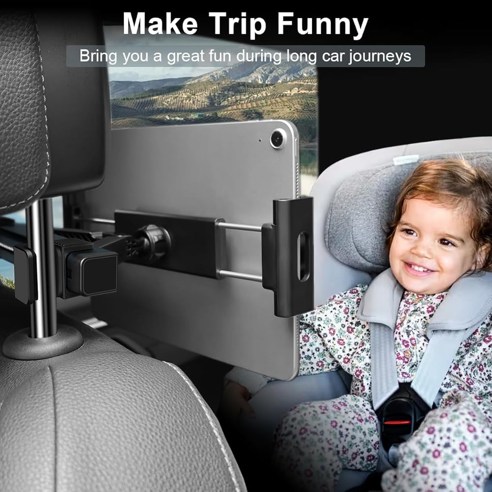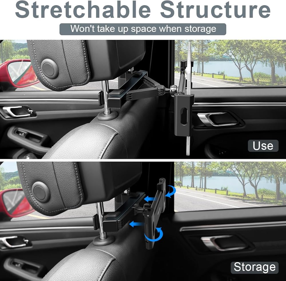 【مريح ومتعدد الاستخدامات】يعد حامل مسند رأس السيارة هذا أداة رائعة لرحلات طفلك أو ركاب المقعد الخلفي الآخرين للترفيه أثناء القيادة لمسافات طويلة، مثل مشاهدة الأفلام وممارسة الألعاب وما إلى ذلك. لا تحتاج إلى حمل أجهزتك طوال الوقت الأداة المثالية. ويمكنك طيها إلى وحدة صغيرة جدًا عند عدم الاستخدام، وسهلة التخزين في صندوق القفازات أو جيب الباب.