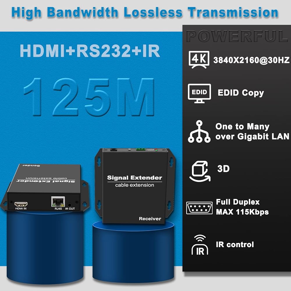 جهاز استقبال موسع HDMI 4K عبر إيثرنت Cat5e/6/7 حتى 410 قدم، HDMI Balun RX واحد إلى متعدد عبر مفتاح جيجابت مع نسخ EDID والتحكم في الأشعة تحت الحمراء، جهاز استقبال HDMI بدون زمن الاستجابة، RS232 ثنائي الاتجاه