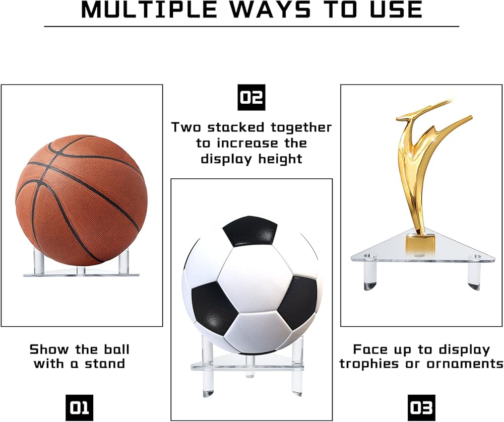 • ❥ خامة عالية الجودة: مصنوعة من مادة الأكريليك الفاخرة، حامل الكرة الشفاف قوي ومتين، ويعمل بشكل مثالي لحمل الكرة وعرضها.