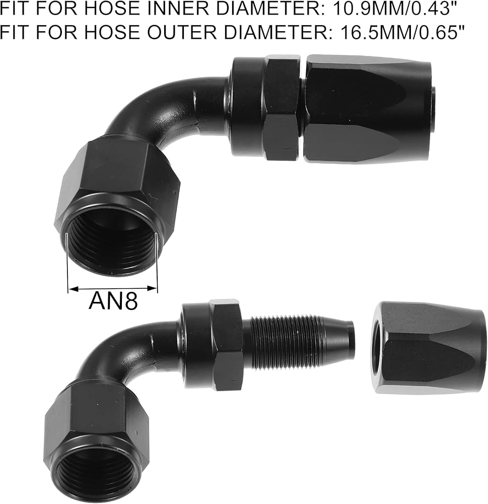 [الحجم] حجم الخيط المناسب لخرطوم 8AN هو 3/4-16 UNF وخط وقود CPE المضفر الذي يعمل به يجب أن يكون قطره الداخلي 0.43 بوصة.