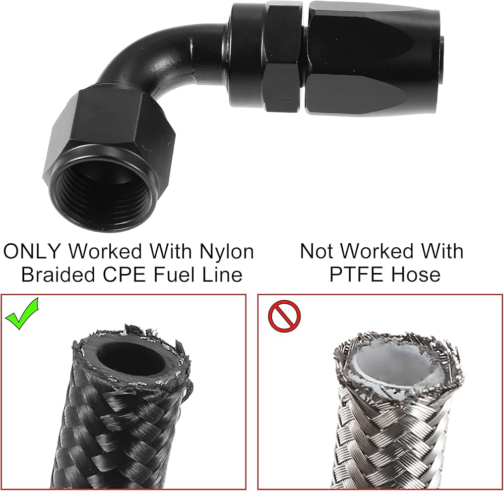 [يرجى ملاحظة] تركيبتنا الدوارة تعمل فقط مع خط وقود مجدول من النايلون. إنها ليست مخصصة لخراطيم PTFE أو الخراطيم المطاطية.