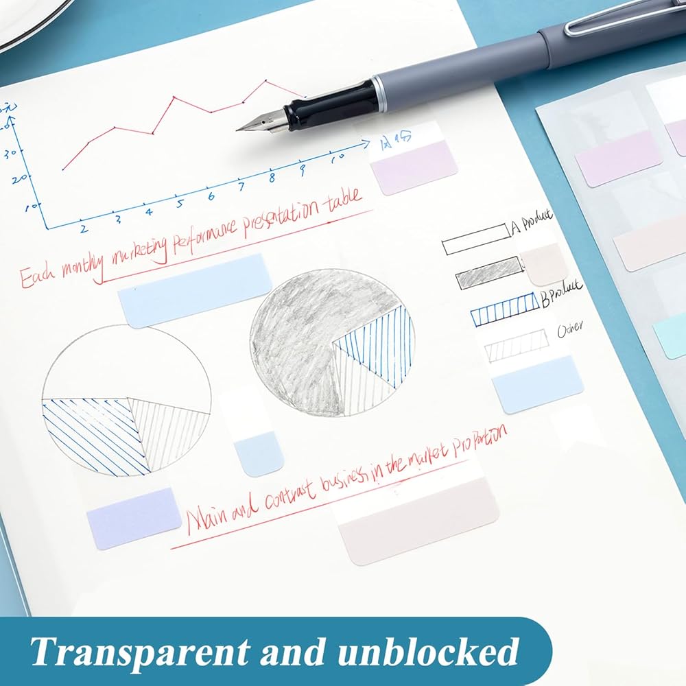 • 【تصميم جيد】ملاحظاتنا اللاصقة عبارة عن ملاحظات لاصقة رفيعة وشفافة مستطيلة، والجزء الشفاف لن يحجب معلومات ملاحظاتك، ويسهل كتابتها على الملصقات الشفافة لتسليط الضوء على المعلومات المهمة.