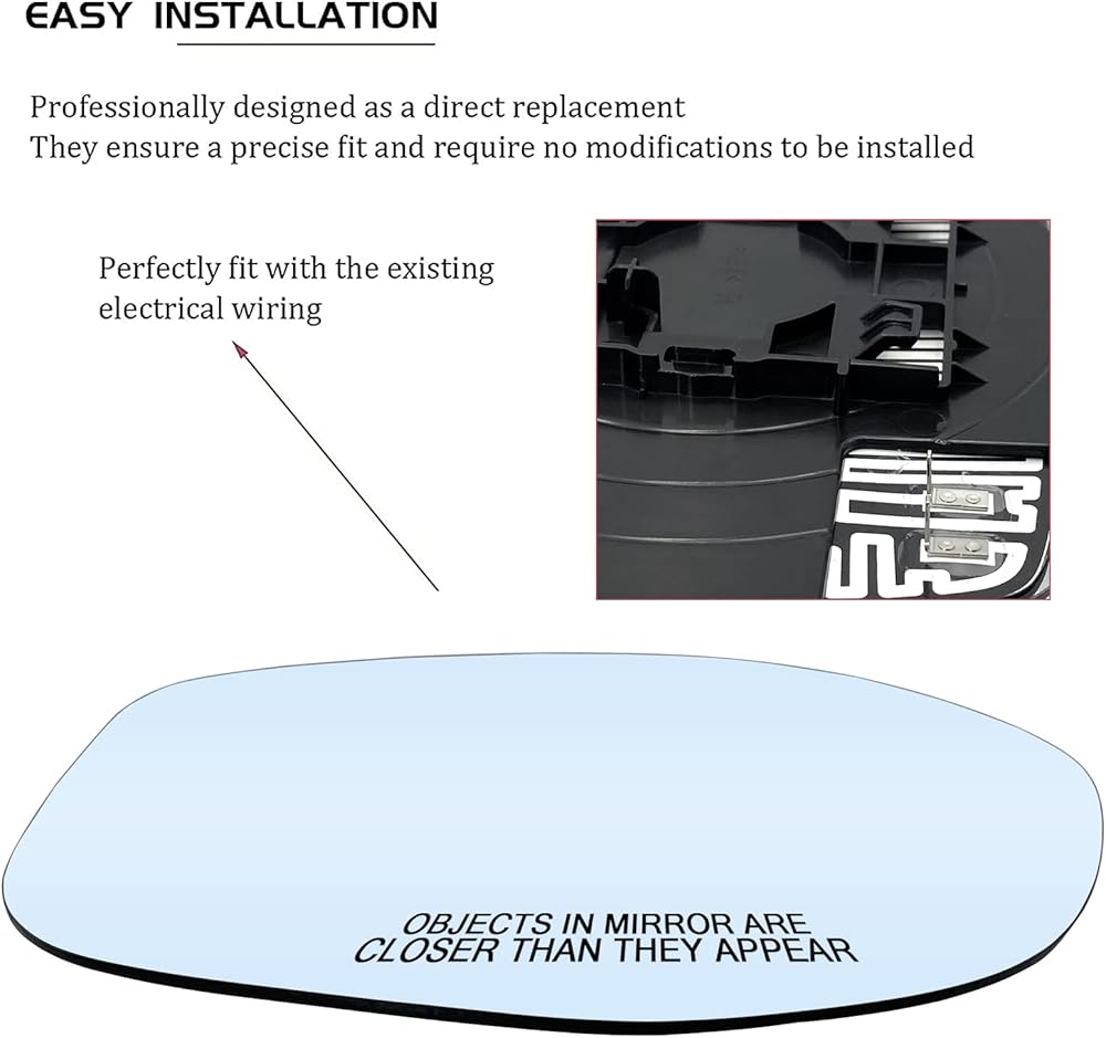 زجاج مرآة عالي الجودة على الجانب الأيسر - تحل هذه المرآة الجانبية محل زجاج المرآة المسخن من جانب السائق المكسور أو المفقود لضمان سلامتك خلف عجلة القيادة. مرآة الرؤية الجانبية الخاصة بنا مصممة كبديل مباشر، وتوفر رؤية أفضل، وتحسن سلامتك.