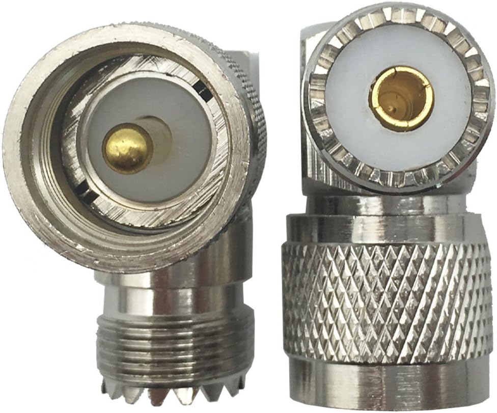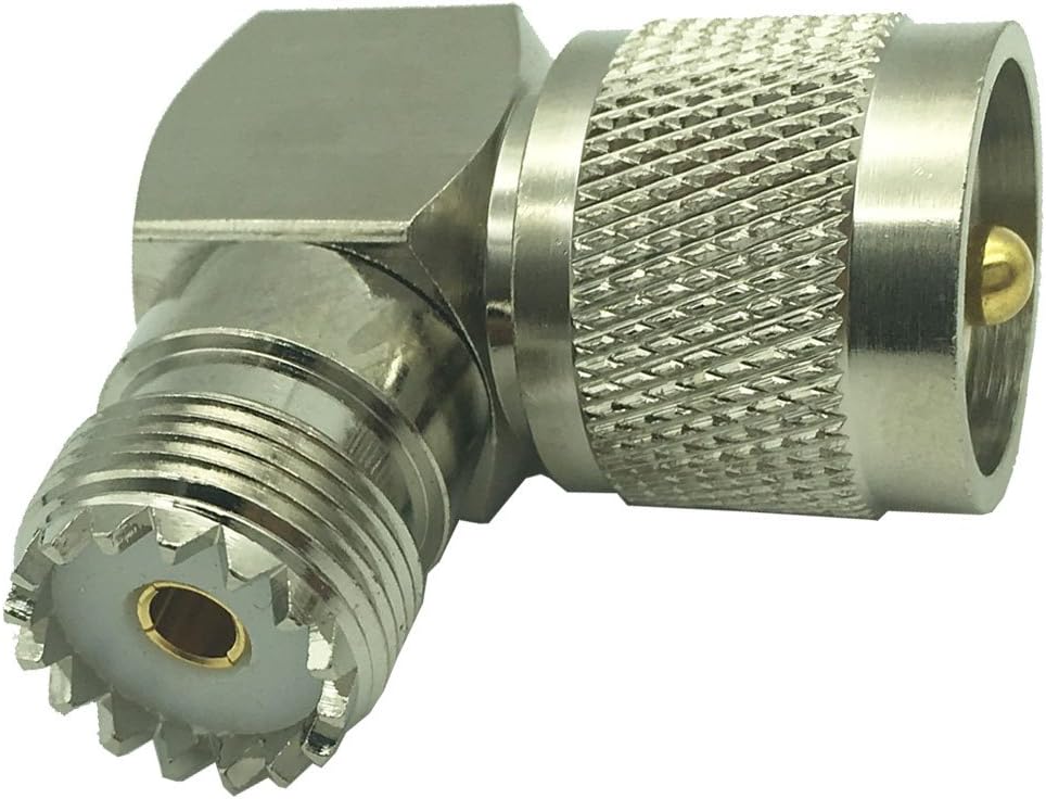 محول محوري للترددات اللاسلكية UHF ذكر PL259 إلى أنثى SO-239 موصل الزاوية اليمنى