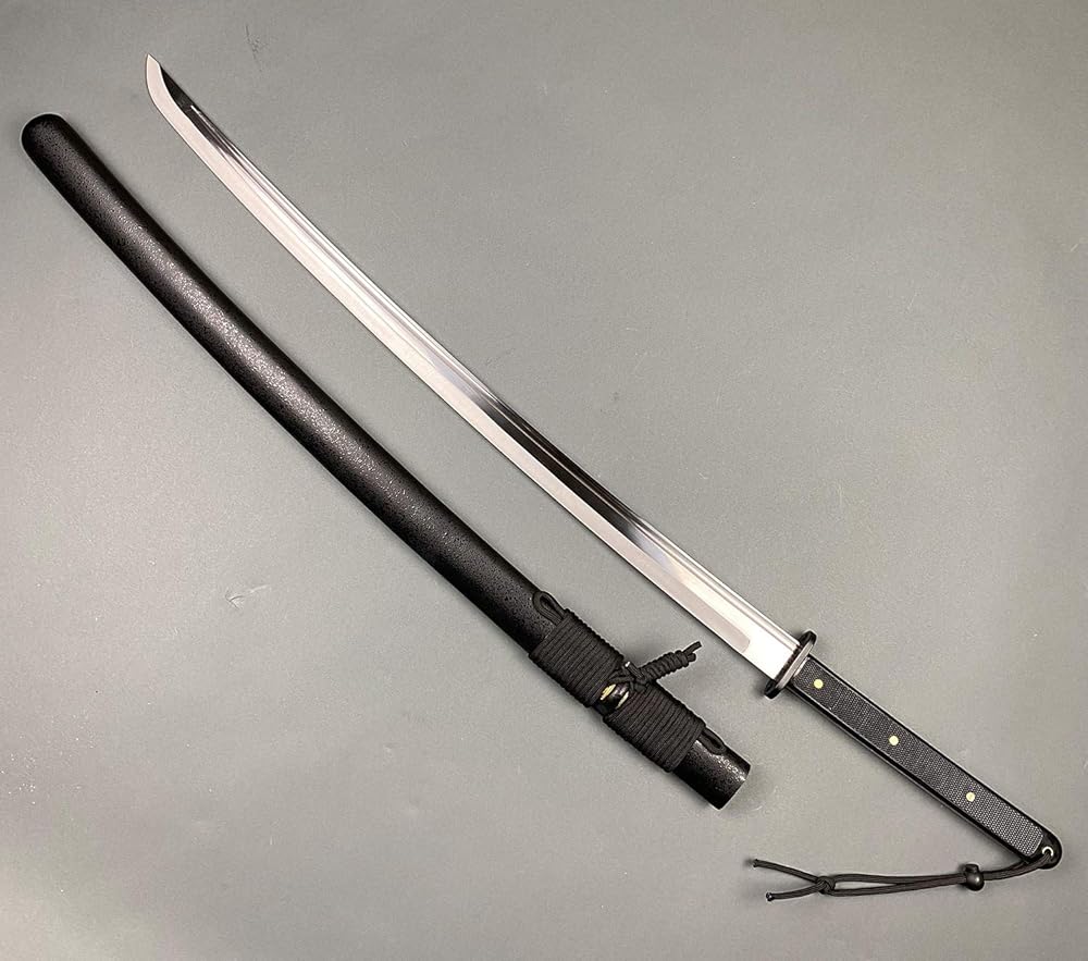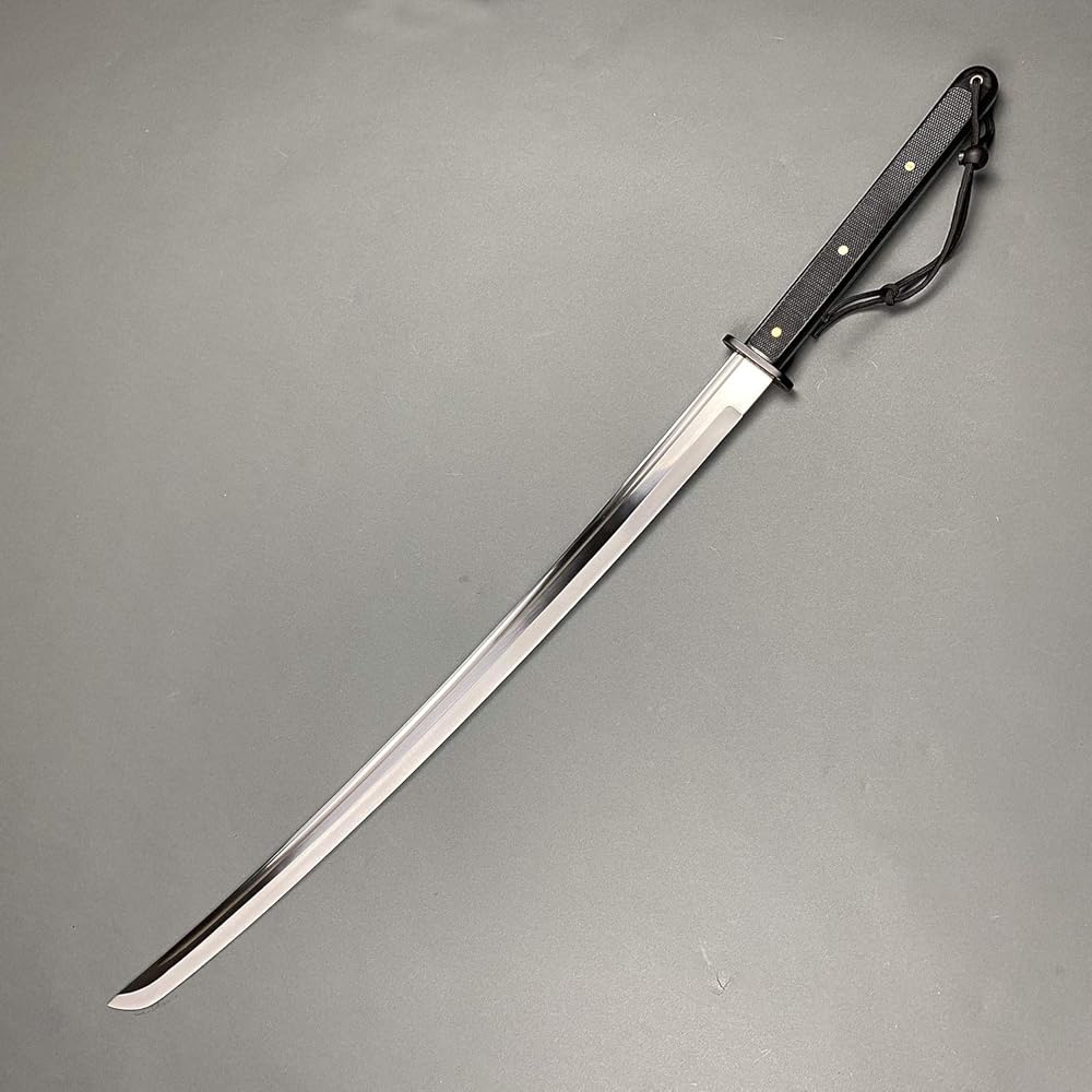 موشا كاتانا الساموراي التكتيكية مقاس 39.5 بوصة مصنوعة يدويًا مع شفرة تانغ كاملة من الفولاذ الكربوني 1045. للمجموعات للمبتدئين، ممارسة التدريب على قطع حصيرة القش (كاتانا)