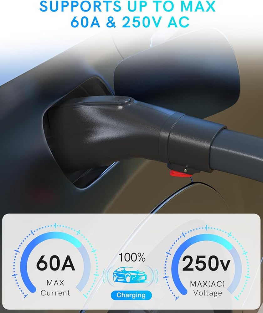 【شحن سريع】- يدعم محول شاحن تيسلا الحد الأقصى لطاقة الإخراج الحالية البالغة 60 أمبير والحد الأقصى لجهد الإدخال 250 فولت تيار متردد. وهذا يسمح بشحن أسرع لسيارتك J1772. سواء كنت في المنزل أو أثناء التنقل، يمكنك الاعتماد على هذا المحول j1772 ليوفر لك شحنًا سريعًا وفعالاً لتلبية احتياجات الشحن الخاصة بك.