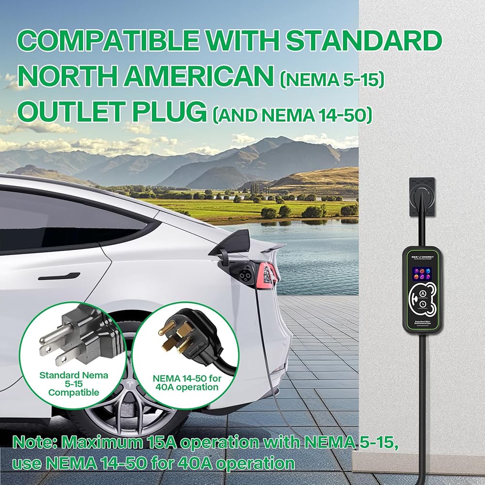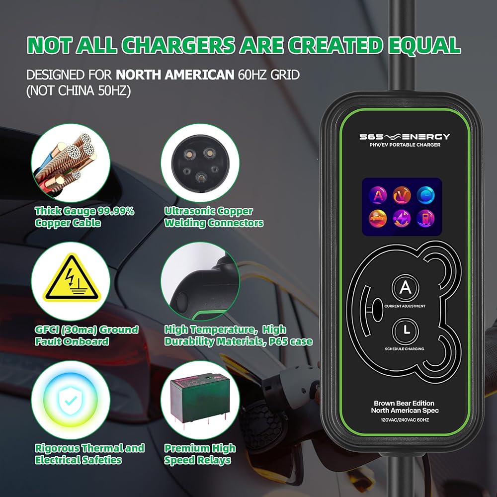 مصممة لشبكة أمريكا الشمالية 60 هرتز، وليست صينية/أوروبية معدلة. لا تدعي 565 Energy أي ارتباط بعلامة Tesla التجارية أو علامتها التجارية. يعتمد الشاحن على مركبات NACS / J3400 بما في ذلك موديلات Tesla. هذا المنتج ليس من صنع تيسلا.