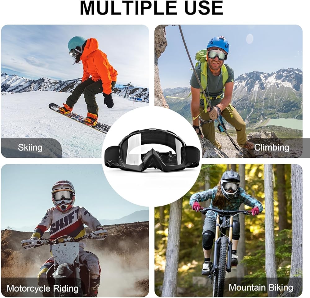 【Multiple Applications】Riding oggles are perfect for outdoor activities such as ATV/UTV/MTB racing, dirt bikes, motorcycles, motocross, cycling, hiking, skiing, surfing, jet skiing and more.