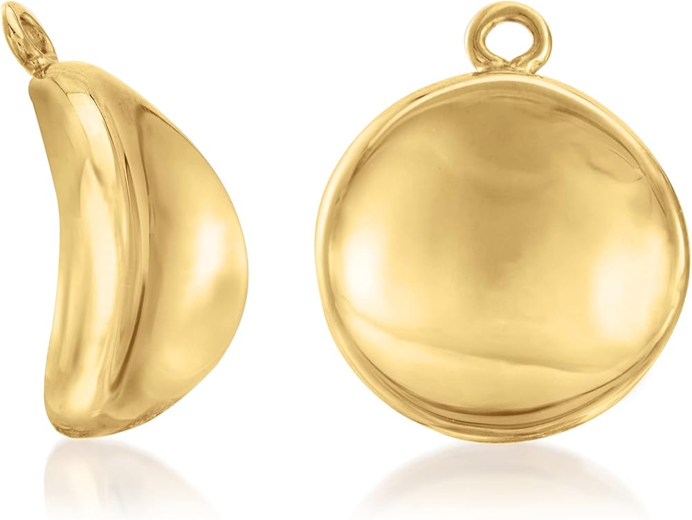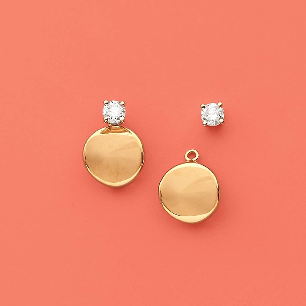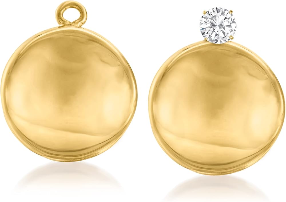 14KT YELLOW GOLD — 14kt yellow gold concave petite disc drop earring jackets. Polished finish. 3/8 in. hanging length, 3/8 in. wide. 0.7 grams. Fits ball/bead/round diamond studs up to 4mm or .50 ct. t.w., sold separately.