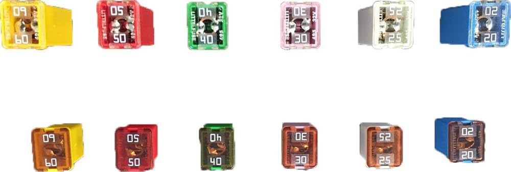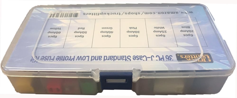 • Combination kit! Includes 36 fuses, 3 LOW and 3 TALL profile fuses of each amp rating: 20, 25, 30, 40, 50, and 60 amperes. Great for when you have both styles of fuses in your vehicle's fusebox! This car fuses assortment kit is a must have, with a wide variety of automotive fuses for most modern vehicles. This kit has just about every amp fuse available in any mini fuses assortment kit. Automotive replacement fuses are a critical part to any car fuse kit, and this jcase fuse assortment is great!