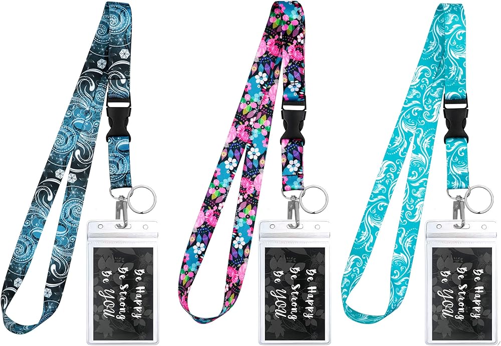 3 قطع من حبال التصميمات المتنوعة مع حامل بطاقة الهوية وحلقة مفاتيح للمفاتيح وبطاقة سفينة الرحلات البحرية والمعلمين والممرضات. حافظة شارة هوية شفافة مقاومة للماء. أساسيات الرحلات البحرية وإكسسوارات العمل. الأزهار خمر.