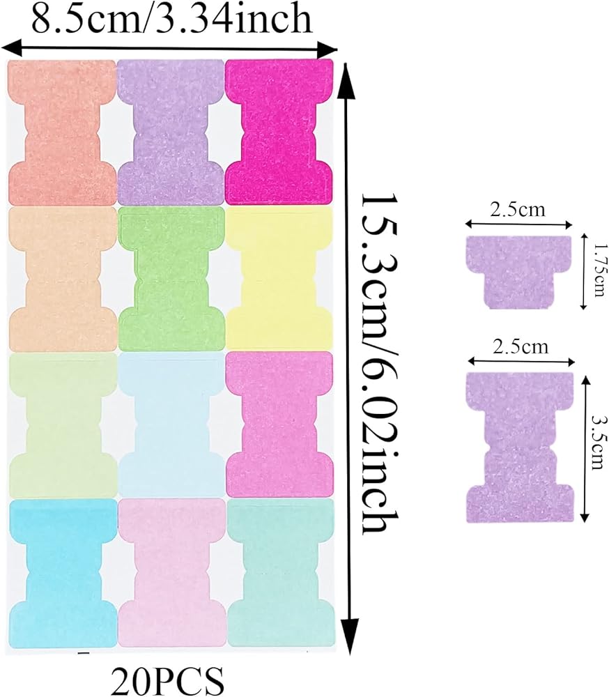 محتوى العبوة: سوف تحصل على 20 ورقة من عروات الملاحظات اللاصقة، وكل ورقة تحتوي على 12 قطعة بألوان متنوعة، وهي ألوان جميلة وحيوية، مما يجعلها لافتة للنظر وسهلة التعرف على صفحات مختلفة وسريعة العثور على النقاط؛ إنها غير منتظمة الشكل، عند طيها، يبلغ طول قطعة واحدة من العروات 2.5 سم/0.98 بوصة والعرض 1.75 سم/0.69 بوصة