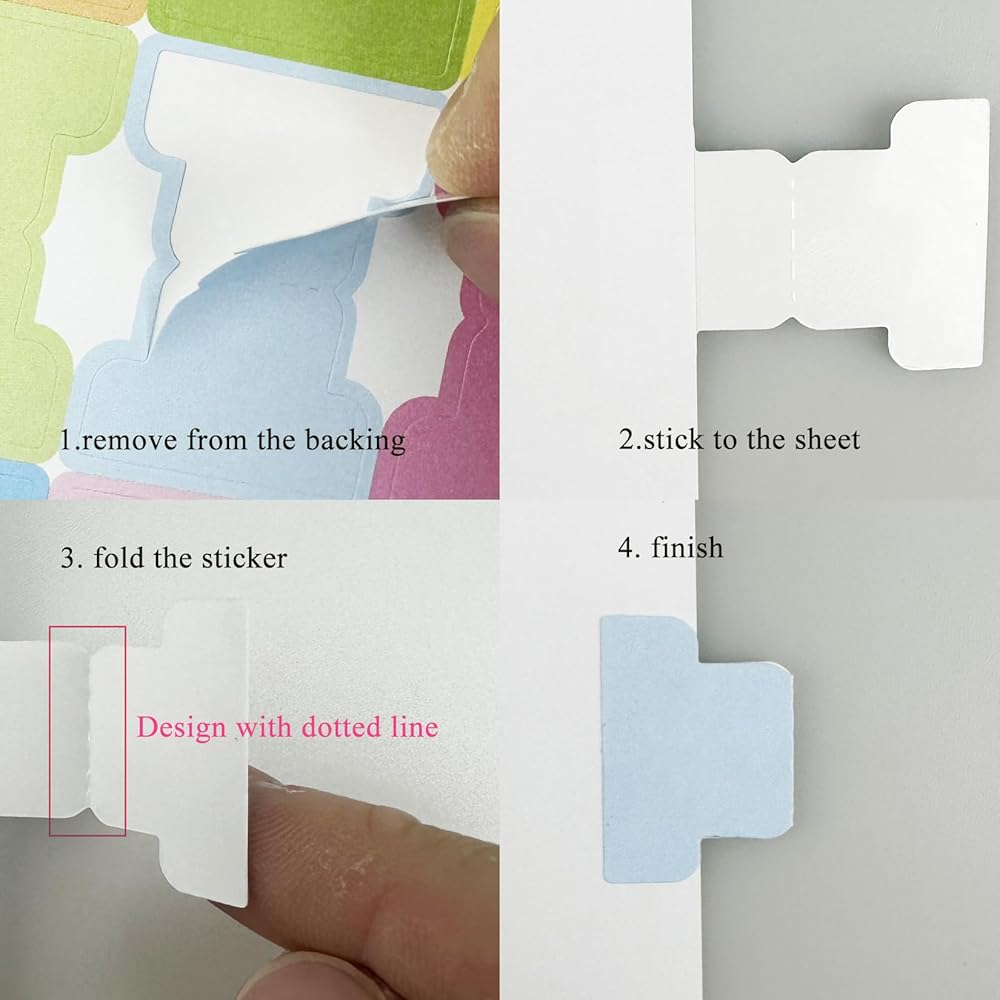ضع علامة على المحتوى بسهولة: عروات النشر قابلة للكتابة، يمكنك الكتابة على عروات كلا الجانبين باستخدام قلم رصاص أو أقلام، وهي أكثر ملاءمة للورق، ومريحة للتذكير وتسجيل الأحداث المهمة. عروات الفهرس سهلة الاستخدام، فهي تحتوي على خط مقطوع مسبقًا، ومن السهل تقشيرها، بالإضافة إلى أنها ذاتية اللصق، فقط قم بتقشيرها ولصقها على الصفحة التي تريد وضع علامة عليها، ثم اكتب لتحديد الهوية
