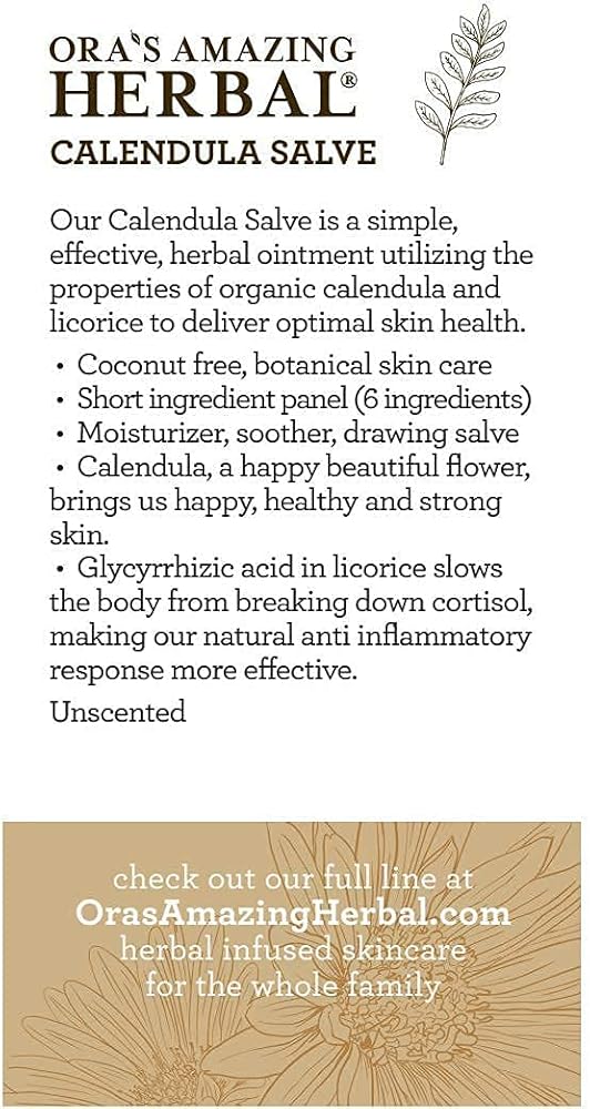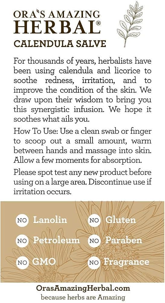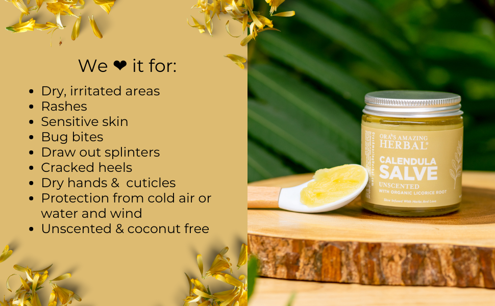 Calendula Salve هو كريم آذريون خالي من البارابين تم تصميمه لأولئك الذين يبحثون عن مرهم بسيط ولكنه فعال للبشرة الحساسة. خالي من جوز الهند ويحتوي على عشبتين فقط، وهو أبسط من مرهم Touchy Skin الأكثر مبيعًا لدينا، مما يجعله مثاليًا لأولئك الذين يعانون من حساسية تجاه جوز الهند والأعشاب المختلفة. لأنه لا يحتوي على السنفيتون فهو مرهم أكثر ملاءمة للرسم.