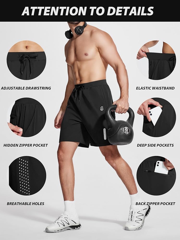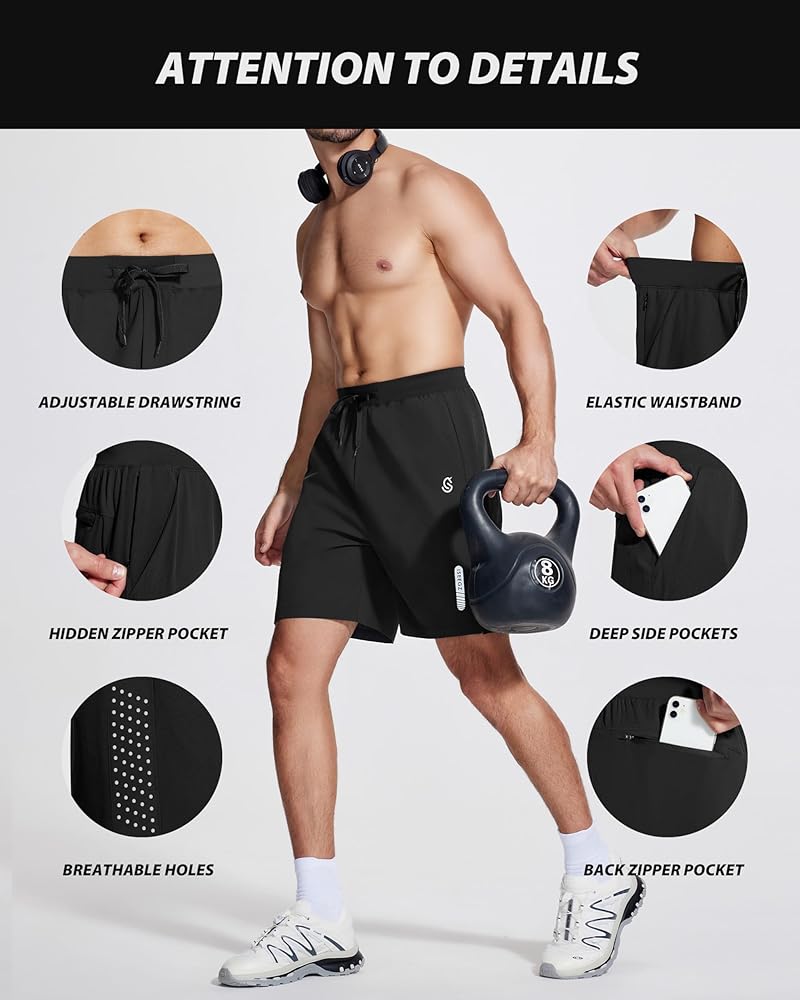 ☁️خامة فاخرة: استمتع براحة لا مثيل لها مع هذه السراويل الرياضية الرجالية المصنوعة من نسيج مسامي وخفيف الوزن يضمن الجفاف والراحة طوال اليوم. توفر شورتات الصالة الرياضية هذه للرجال مقاس 7 بوصات أيضًا قدرًا كافيًا من التمدد للمرونة أثناء التمرين.