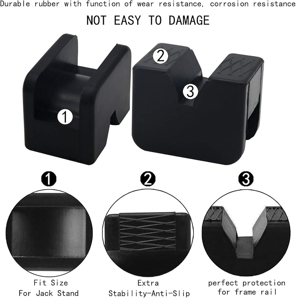 【تصميم الوسادة】تم تصميم محول وسادة جاك ليكون قويًا بما يكفي لدعم سيارتك. سيمنع قضبان الإطار واللحامات من الانحناء عند استخدام جاك لرفع سيارتك، ويمكنه أيضًا حماية مكونات التعليق المطلية أو المطلية.